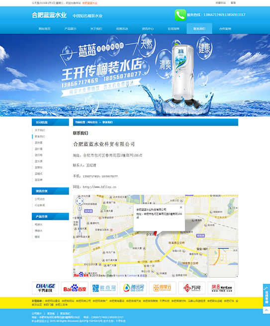 藍藍集團成立于1999年,安徽飲用水行業(yè)領(lǐng)軍品牌,十五年的穩健發(fā)展,成功躋身中國桶裝水行業(yè)第一集團軍,市場(chǎng)覆蓋全國20多個(gè)省份。