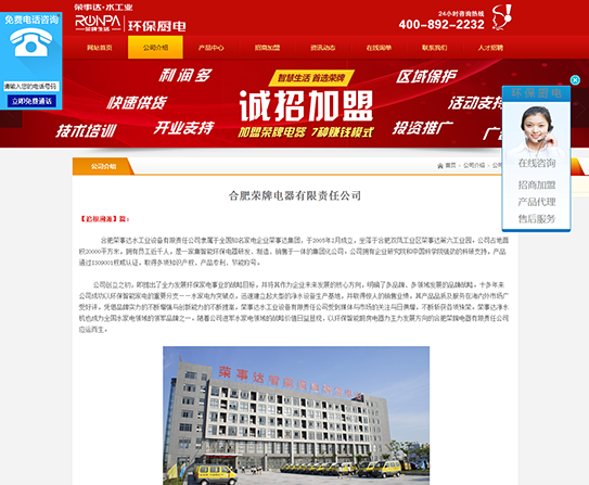 合肥榮事達水工業(yè)設備有限責任公司隸屬于全國知名家電企業(yè)榮事達集團,于2005年2月成立,坐落于合肥雙鳳工業(yè)區榮事達第六工業(yè)園。公司占地面積20000平方米,擁有員工近千人,是一家集智能環(huán)保電器研發(fā)、制造、銷(xiāo)售于一體的集團化公司。