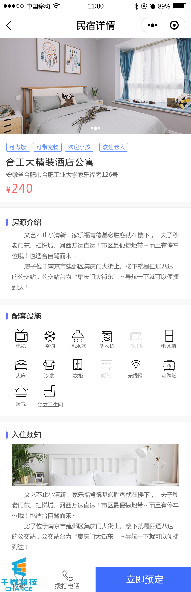 該項目是一個(gè)民宿預定的微信小程序。里面包含在線(xiàn)訂房,在線(xiàn)支付,訂單管理,線(xiàn)上商城,在線(xiàn)點(diǎn)餐等功能