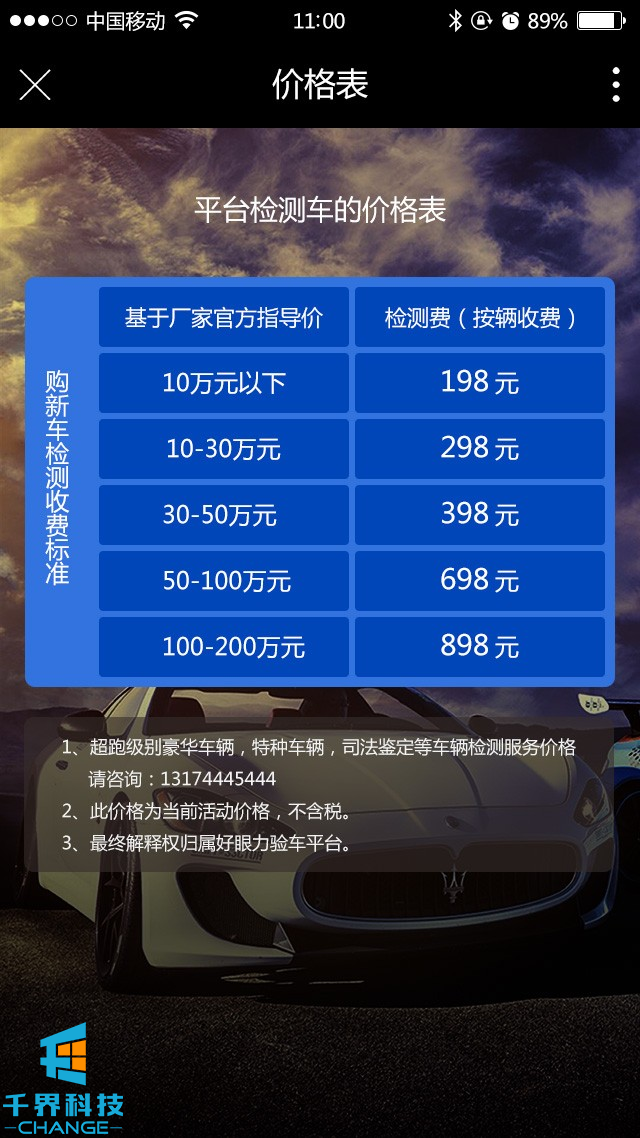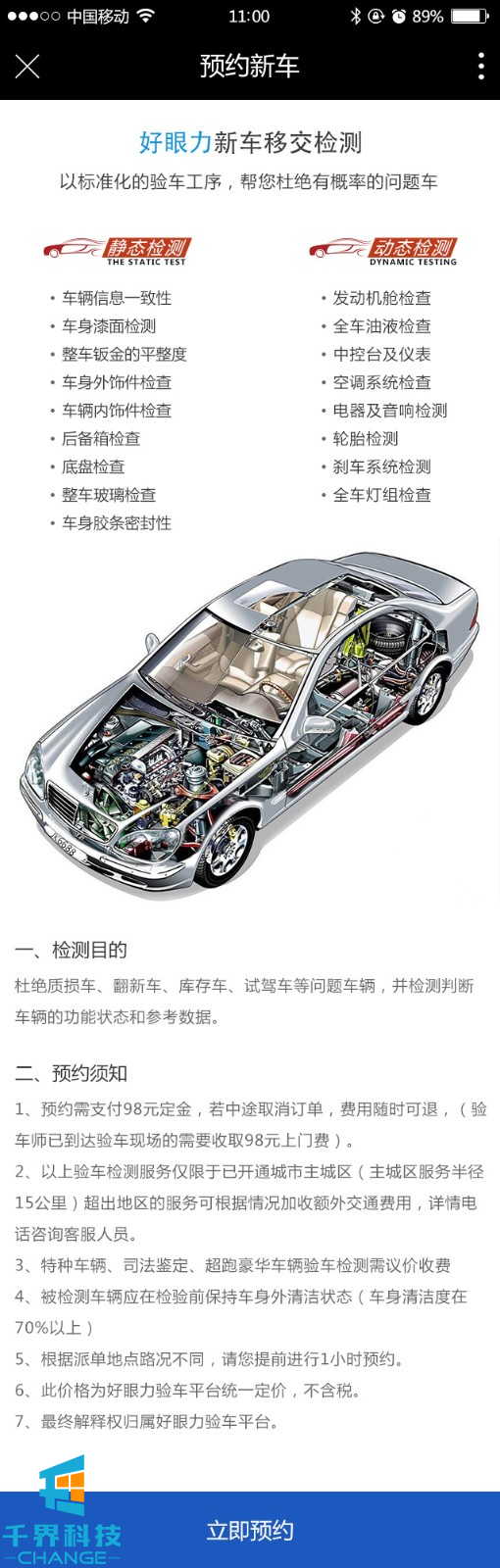 這是一個(gè)預約新車(chē)和二手車(chē)的平臺,可以查看車(chē)輛檢測情況和價(jià)格表