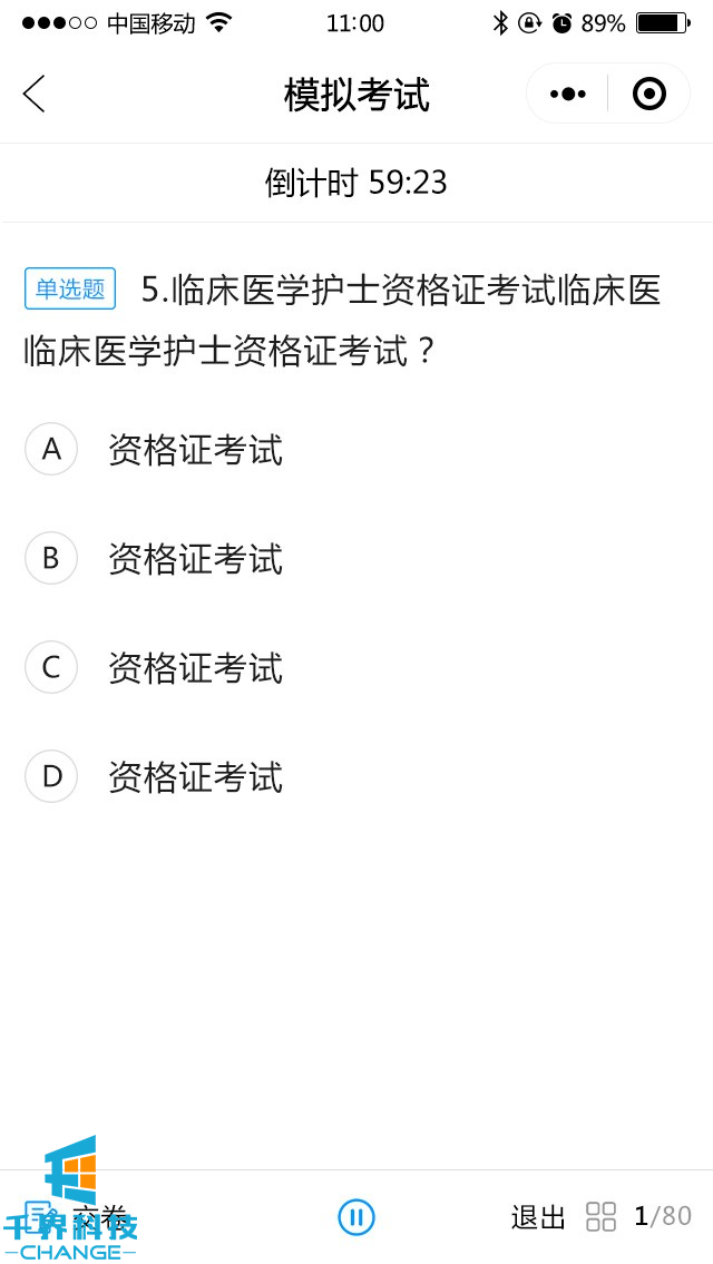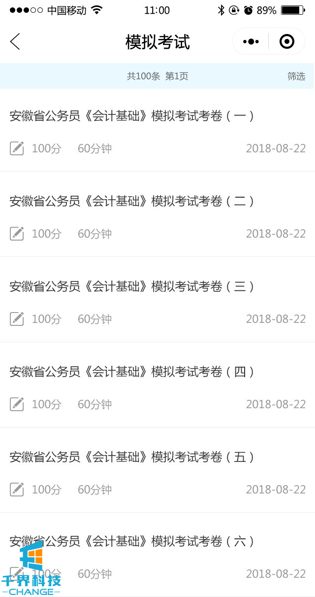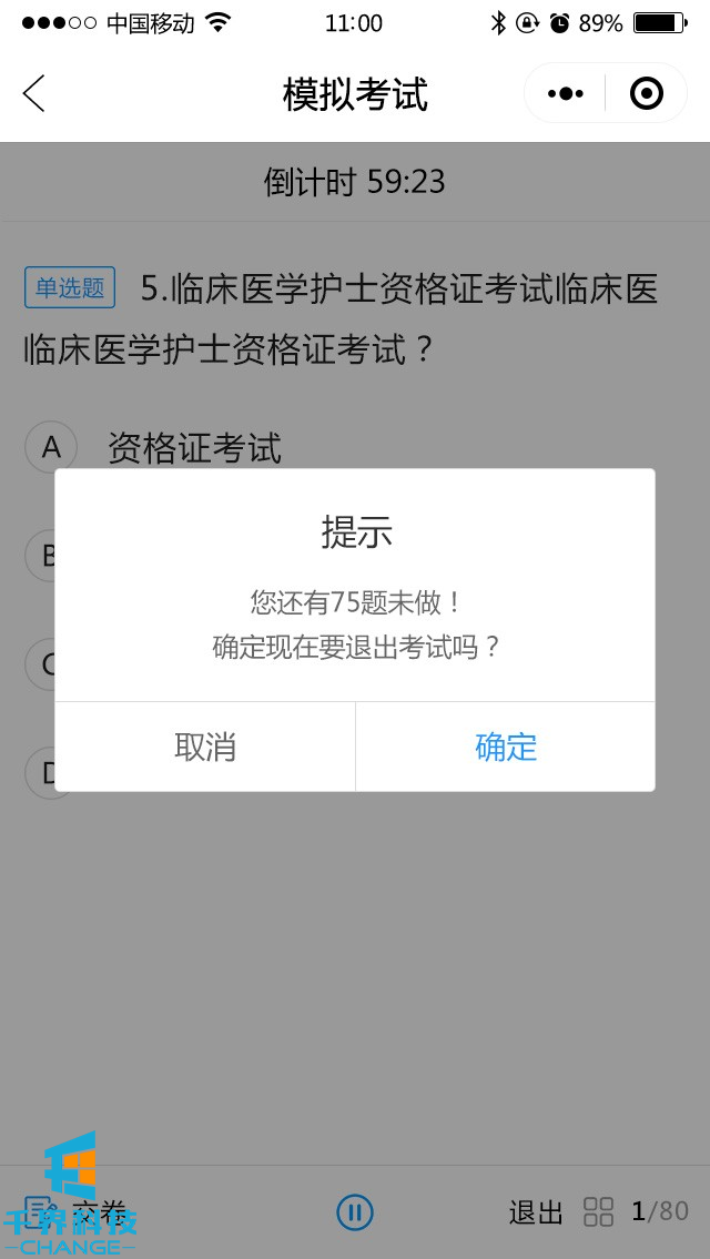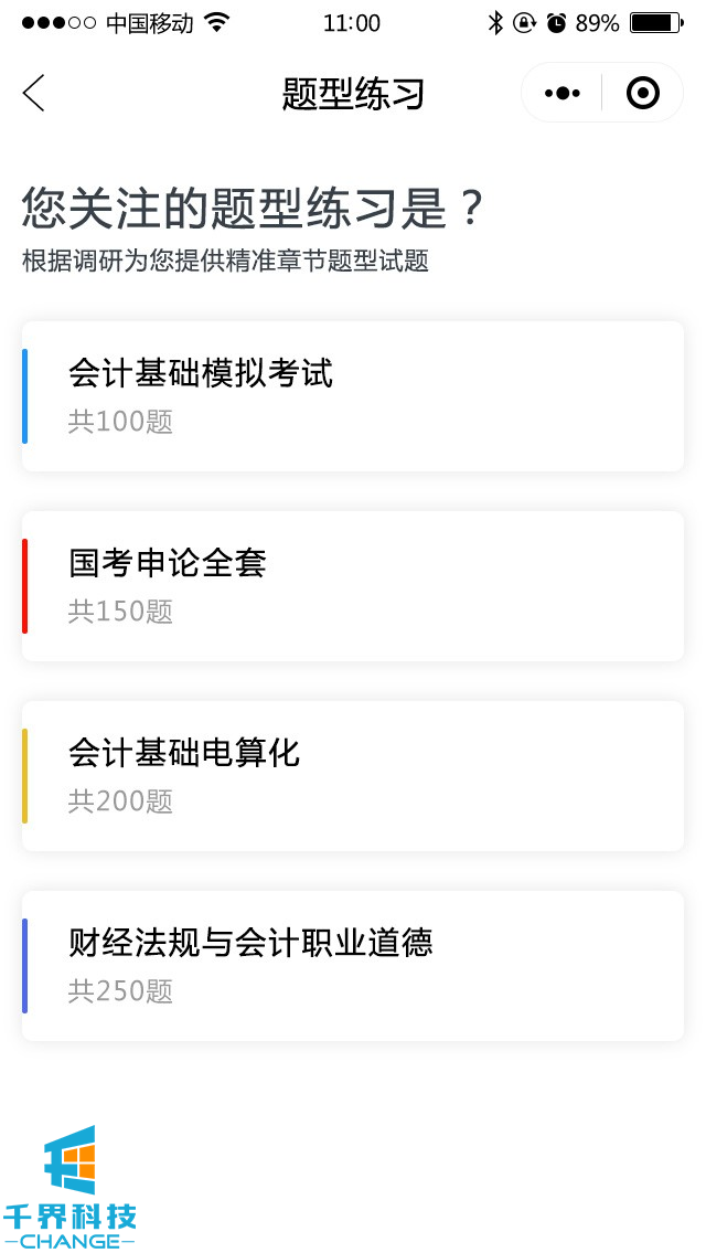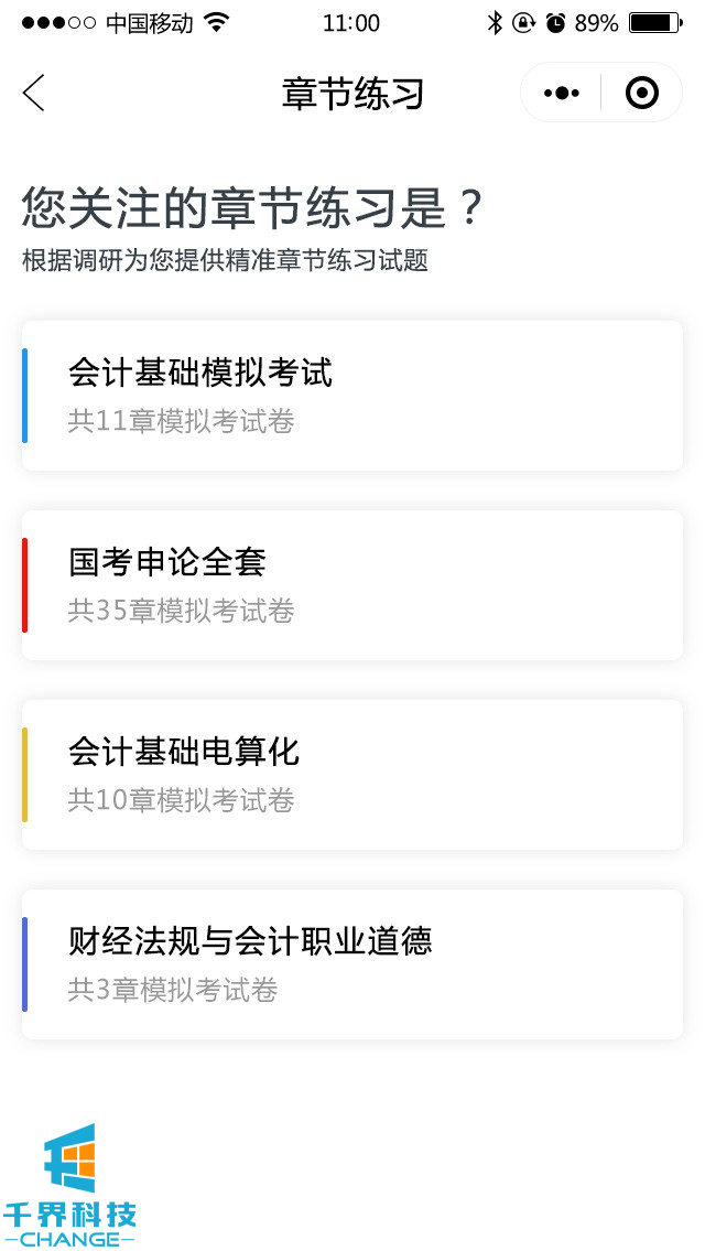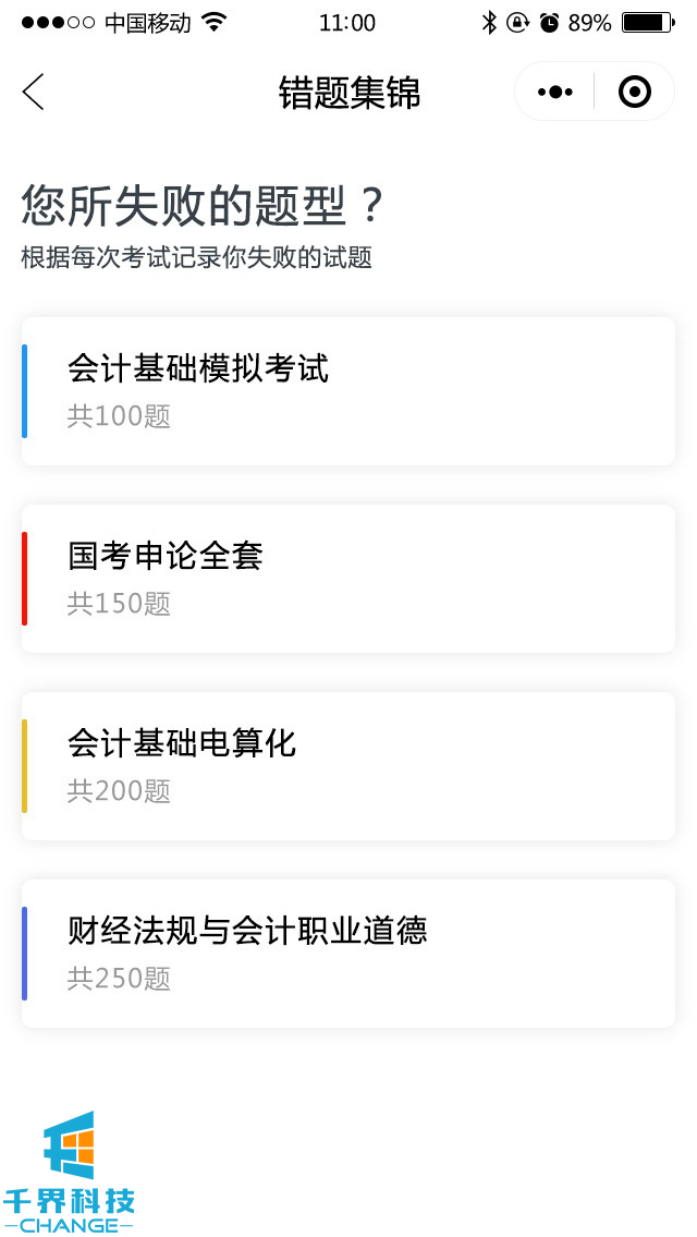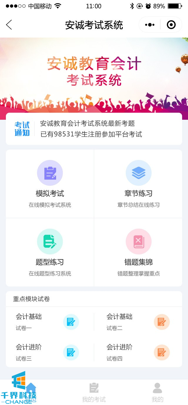 包含模擬考試,提交答題卡,然后出考試成績(jì),試題解析,章節練習,錯題集錦,題型選擇