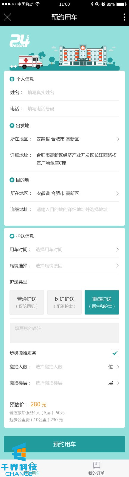 該項目是一個(gè)救護車(chē)預約用戶(hù)的公眾號。