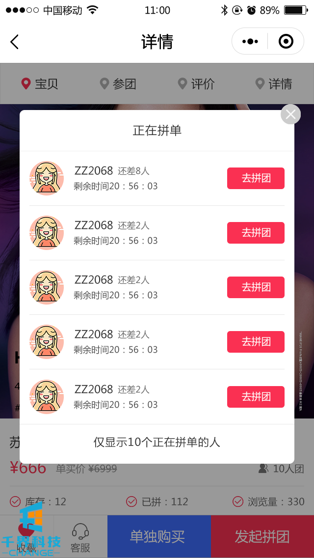 該項目是當下很火的拼團商城微信公眾號,包含商品分類(lèi),產(chǎn)品詳情,正在拼單,還差多少人開(kāi)團,可單獨購買(mǎi),可參與拼團,剩余時(shí)間顯示,達到拼團人數便可開(kāi)團;