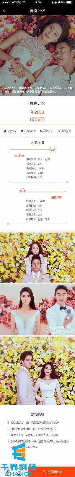 該平臺是一個(gè)多商家的攝影行業(yè)預約平臺,包含套餐分類(lèi)、套餐預約購買(mǎi)、攝影師預約、預約拍照時(shí)間,攝影師作品展示,關(guān)注人數等攝影預約平臺。