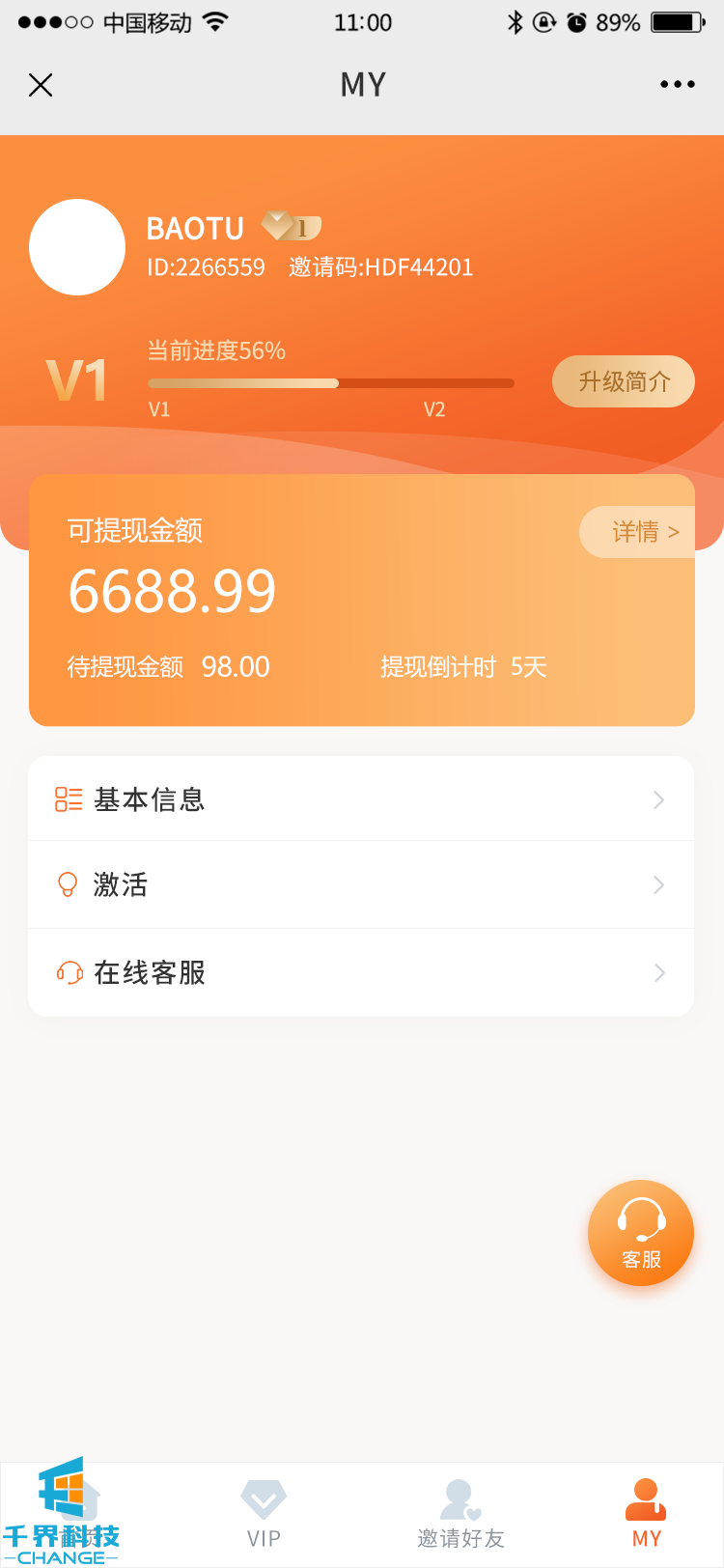項目名稱(chēng):會(huì )員返利系統 項目類(lèi)型:H5開(kāi)發(fā)
