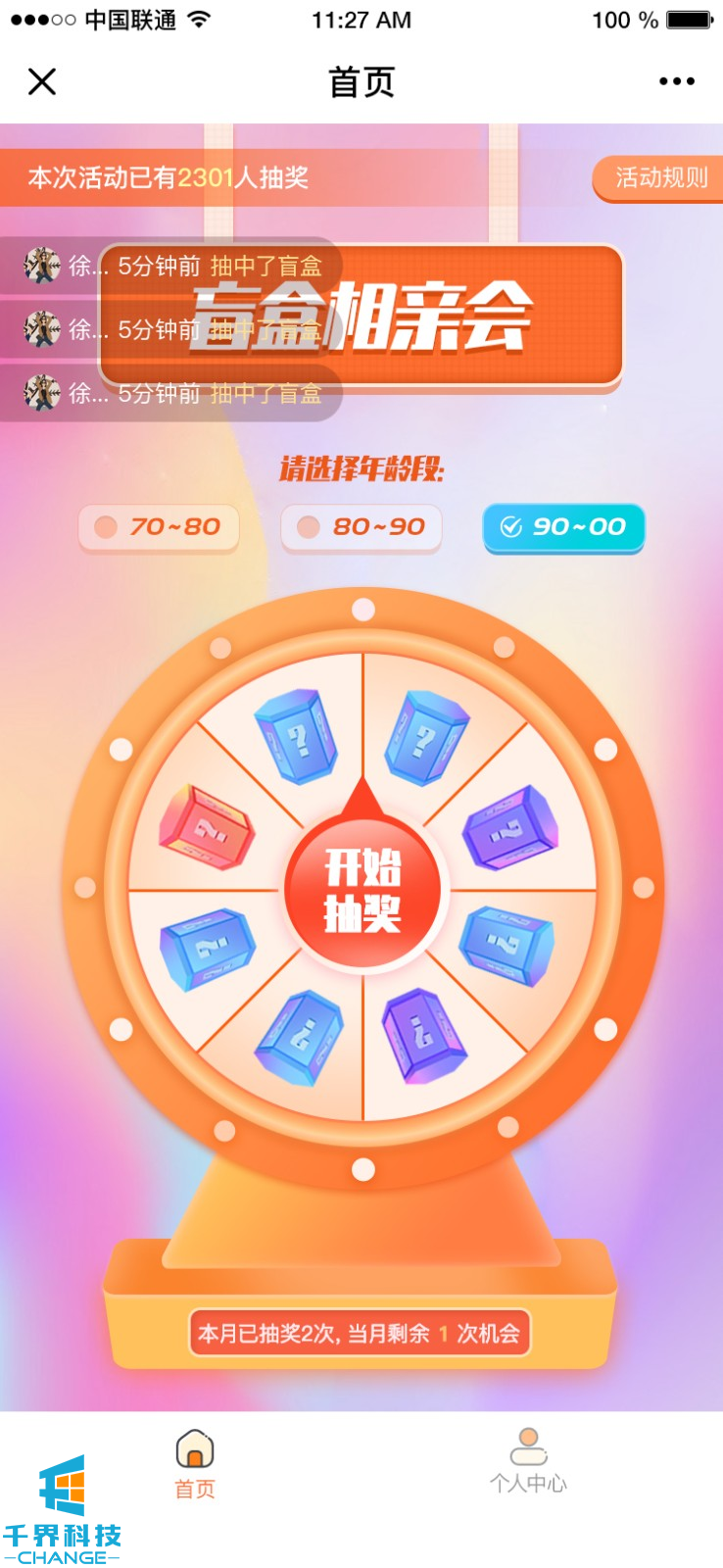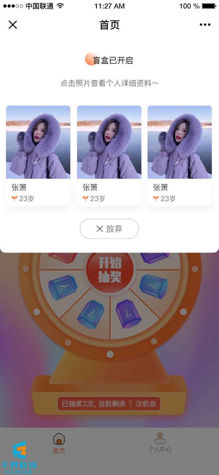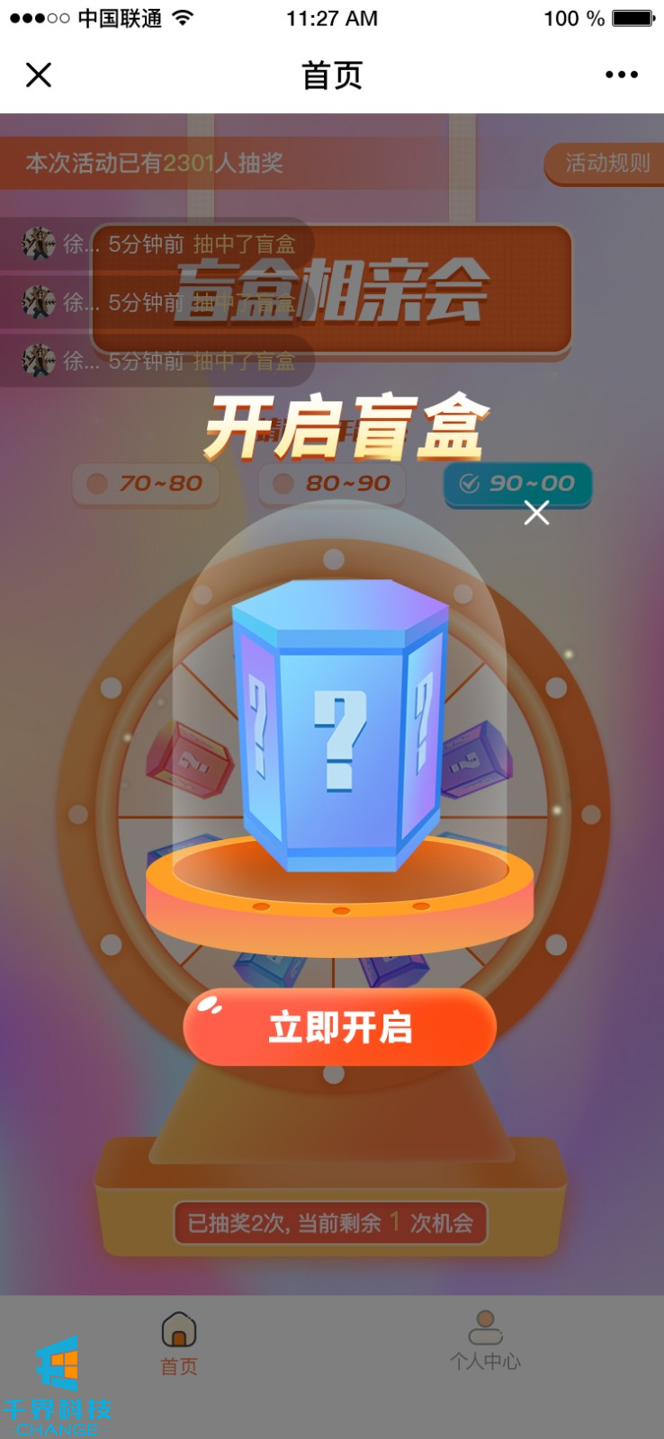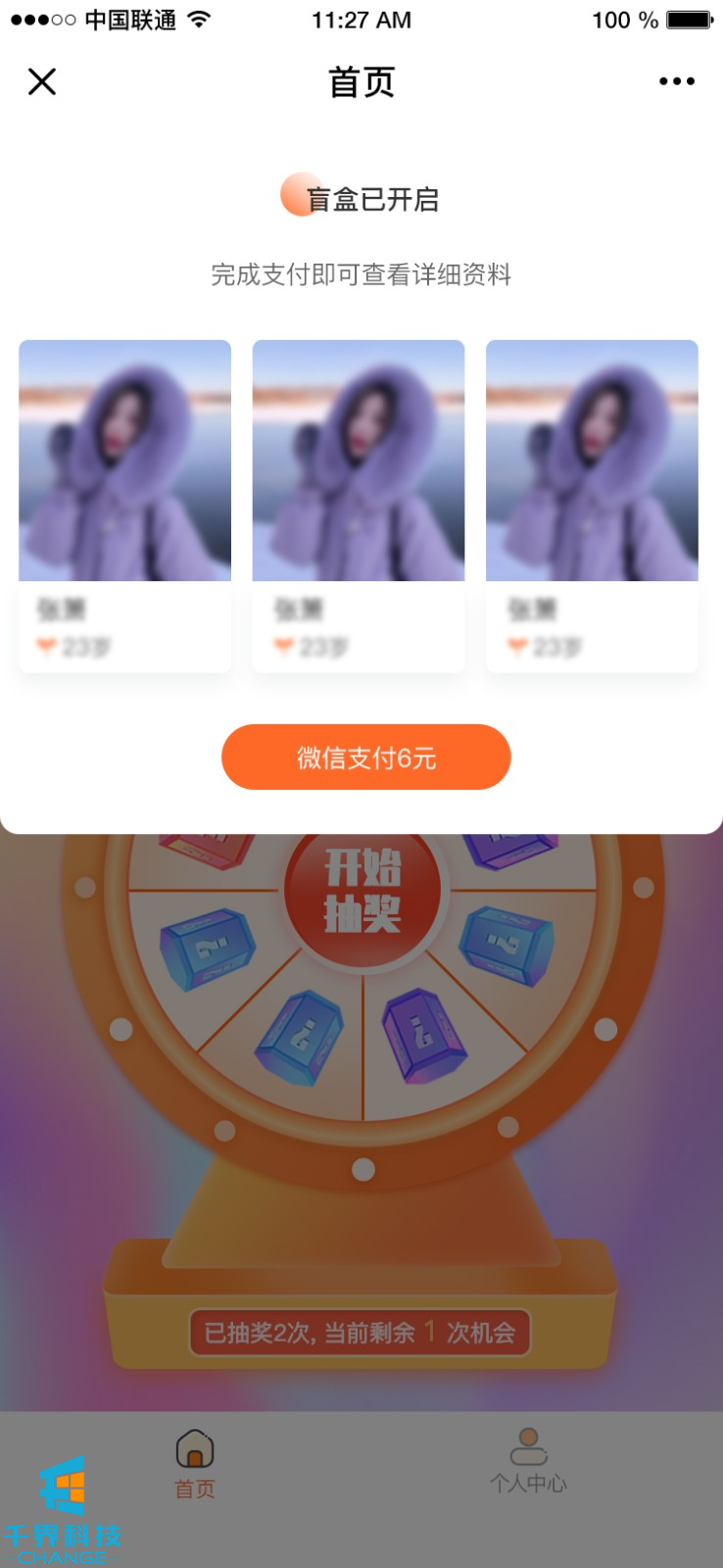 該項目一個(gè)盲盒交友的公眾號,平臺可以入駐商家;每個(gè)商家可以生成推廣碼,用戶(hù)掃碼抽取盲盒可以獲取分潤、平臺存在代理商角色可以進(jìn)行推廣分傭等