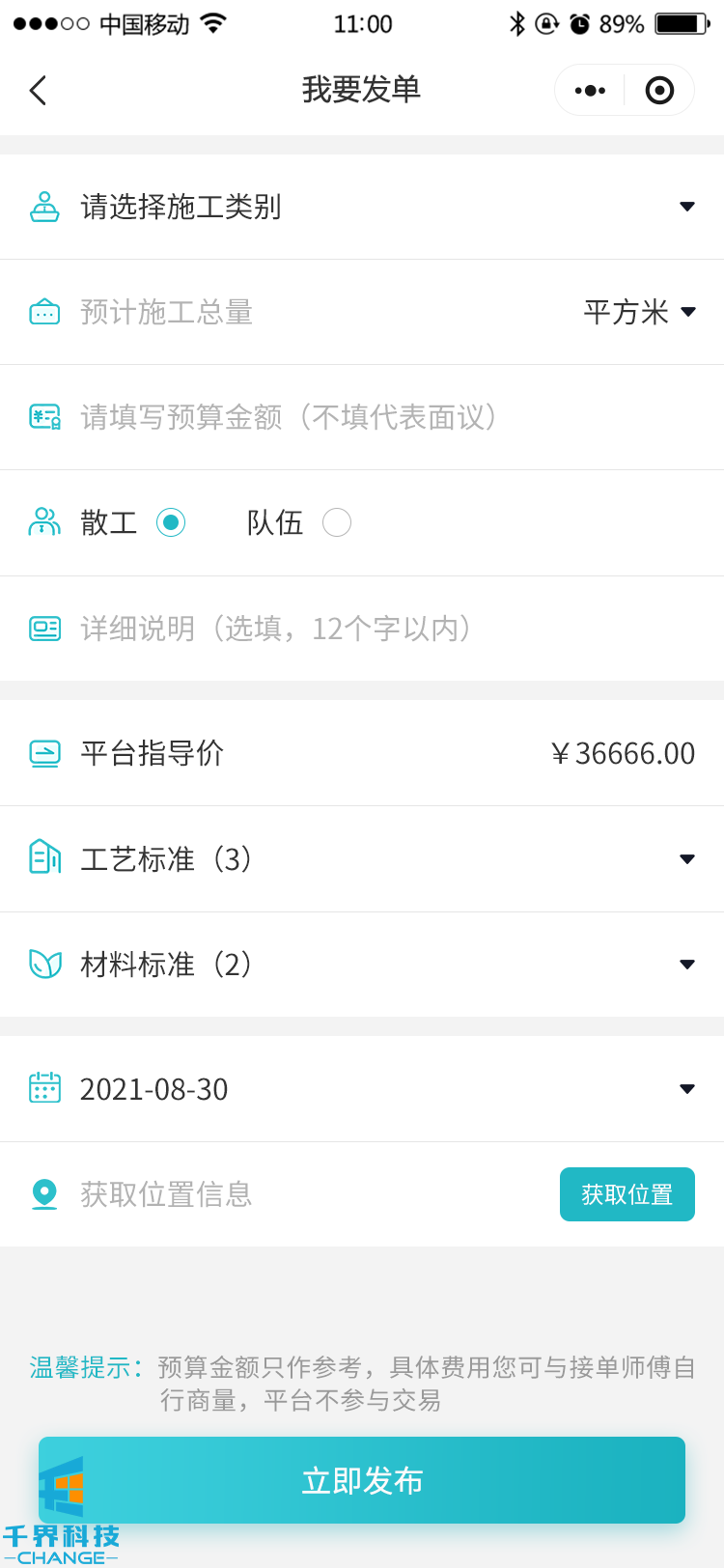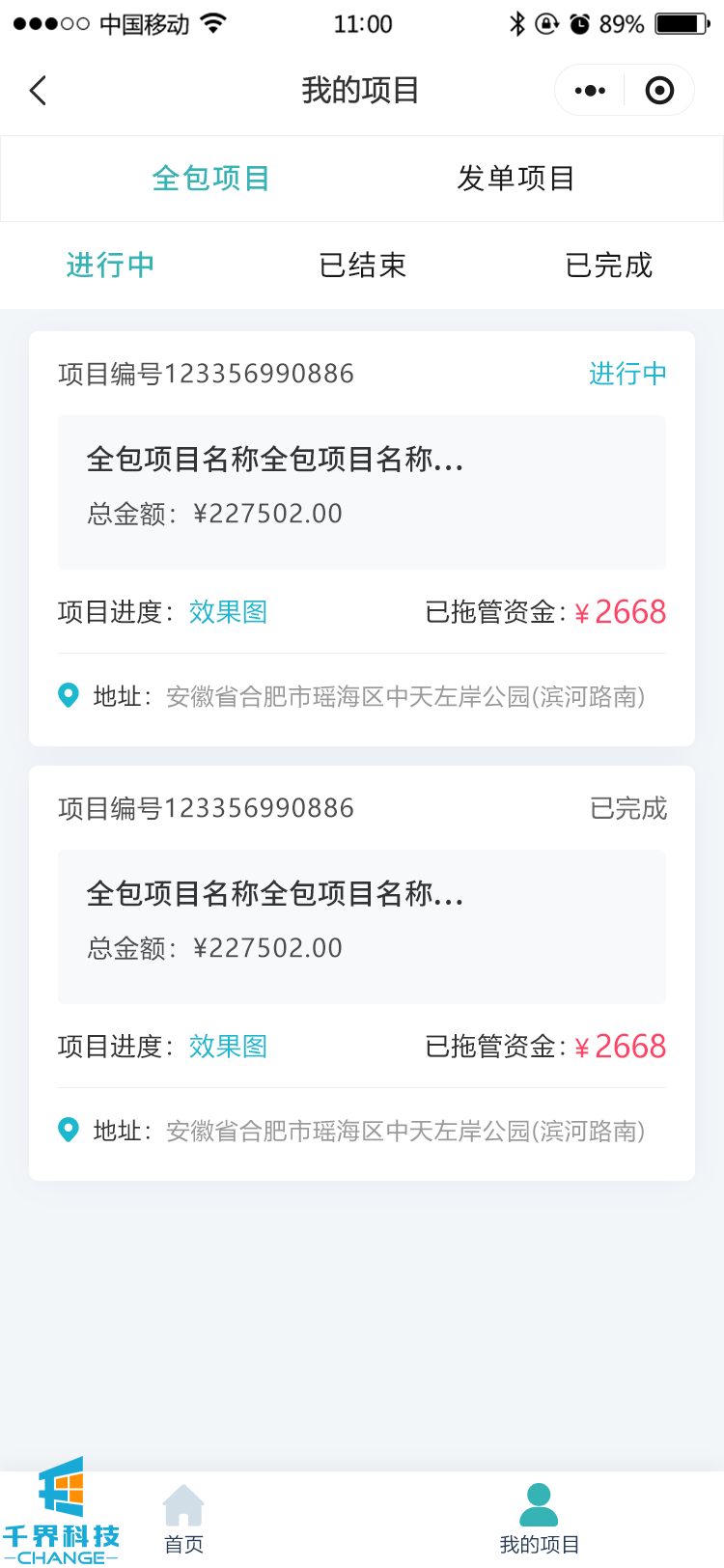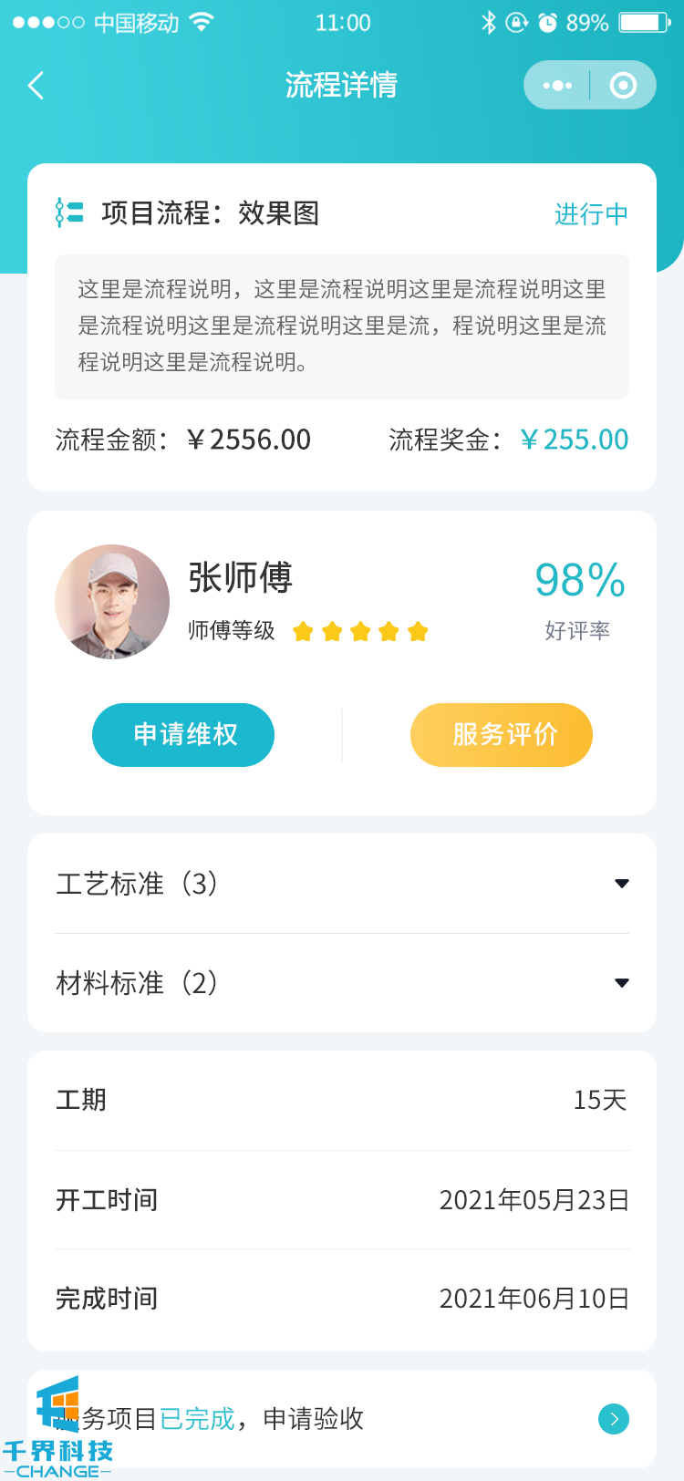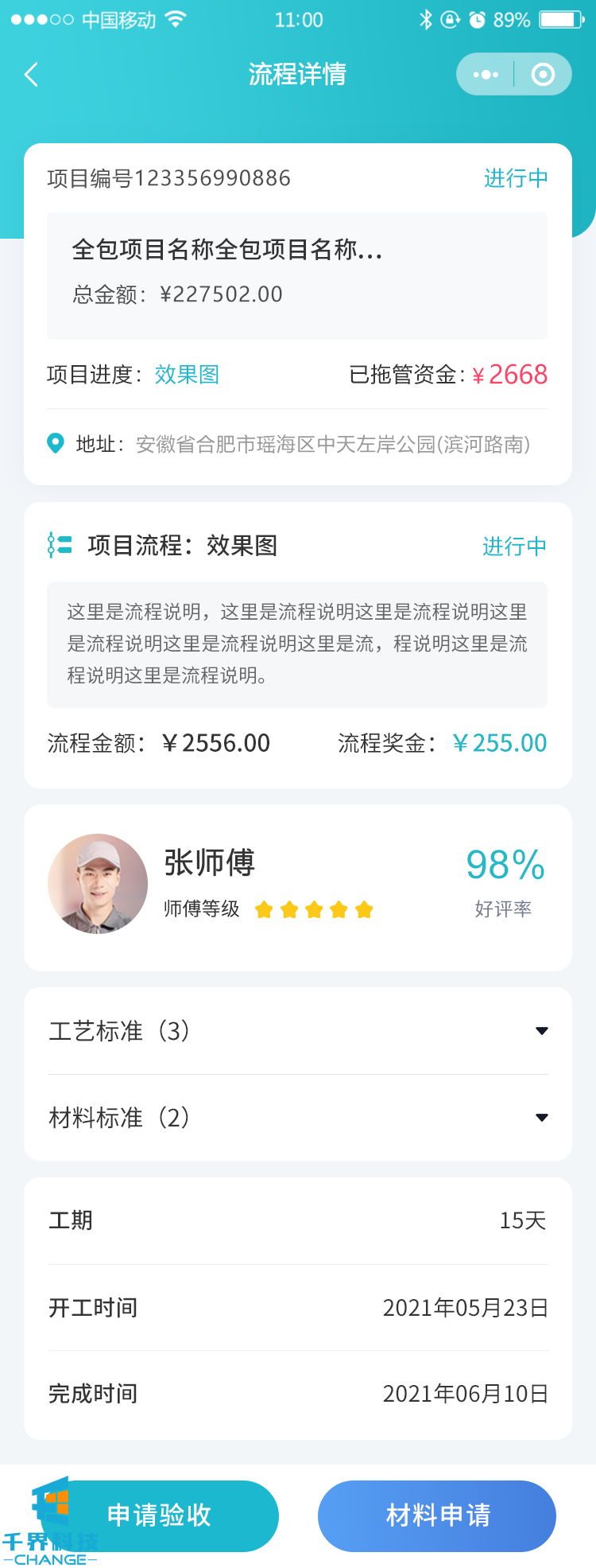 該項目一個(gè)家裝小程序,平臺有分包和整包,分包是用戶(hù)在前端下單,對應的師傅進(jìn)行接單,整包是后臺進(jìn)行發(fā)包,每個(gè)節點(diǎn)的師傅相應的報名接單
