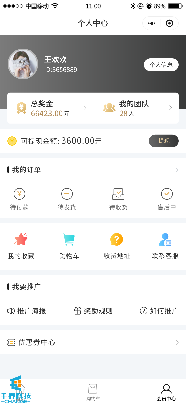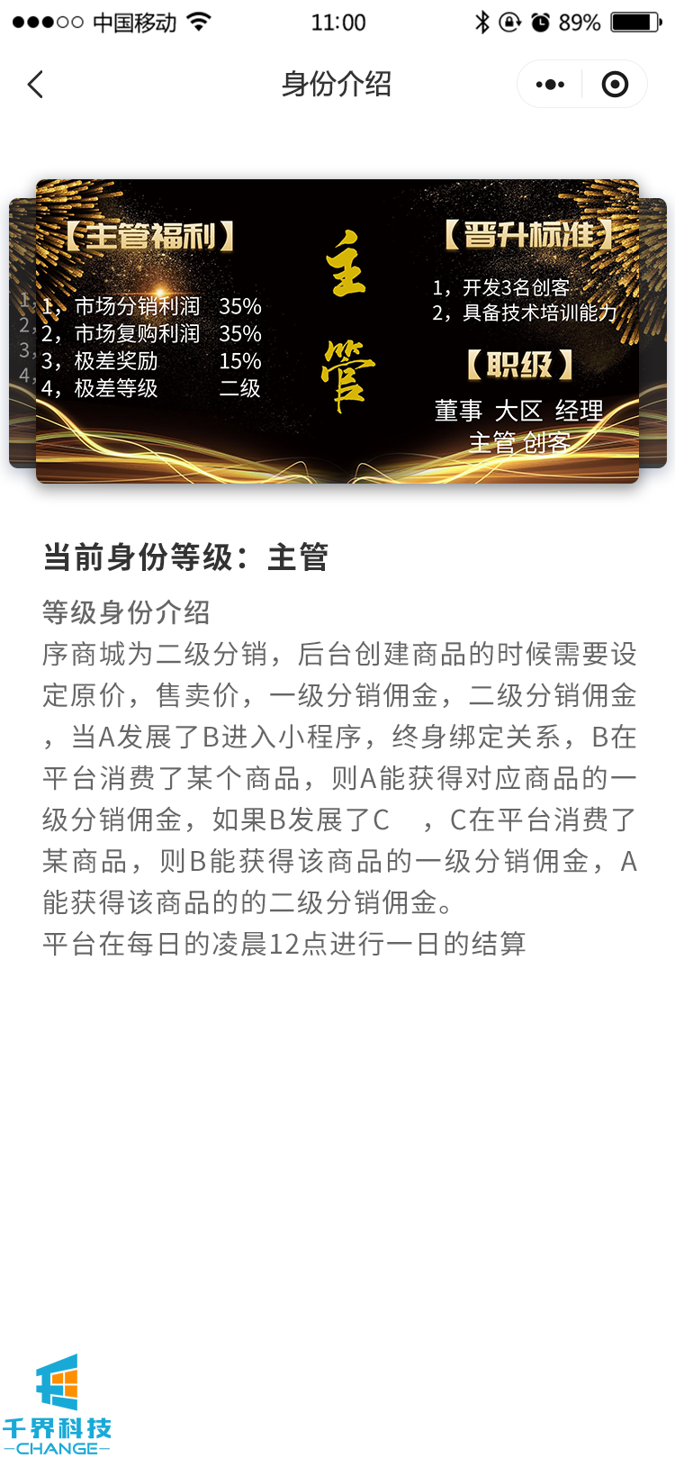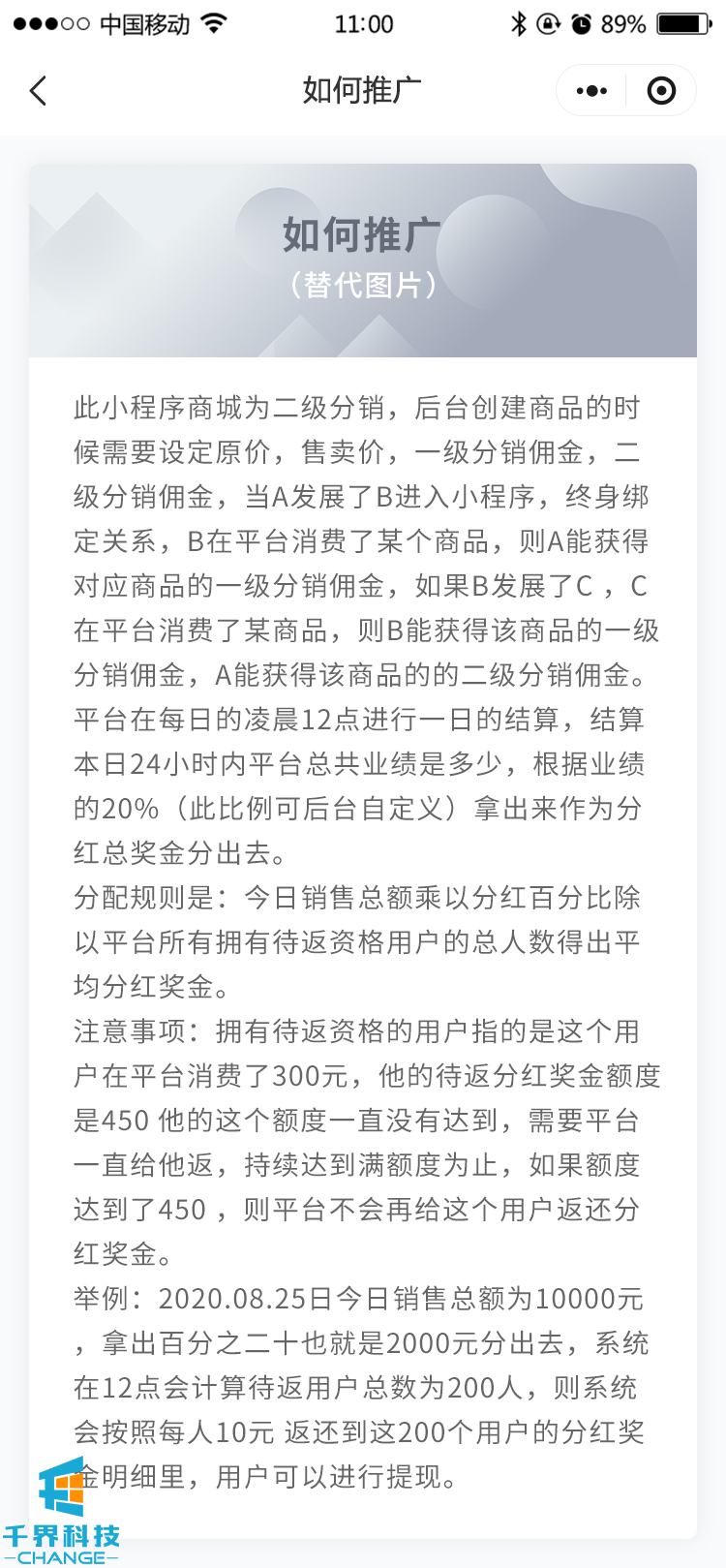 商城有2種分銷(xiāo),一種為購買(mǎi)商品的常規分銷(xiāo),一種為購買(mǎi)的會(huì )員的多層級分銷(xiāo),有級差、層級獎勵等功能