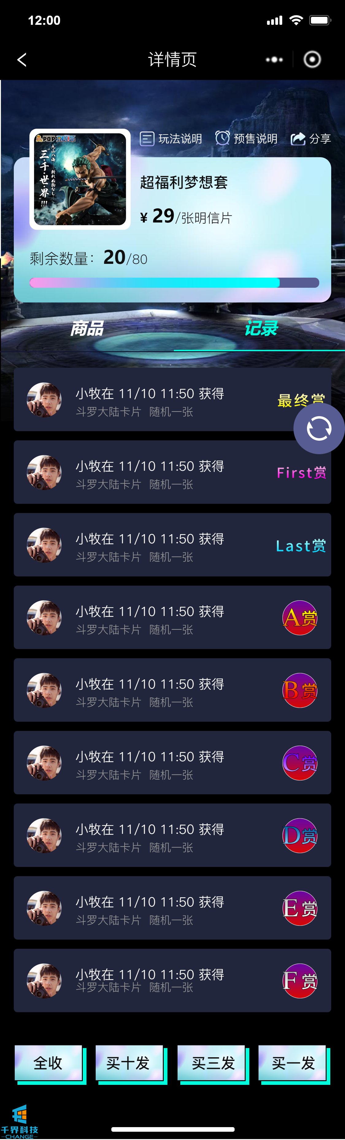 該項目是一個(gè)盲盒抽獎小程序,后臺可以創(chuàng )建多個(gè)抽獎活動(dòng)配可以配置獎品數量,用戶(hù)付費進(jìn)行抽獎并有幾率獲得額外附贈賞