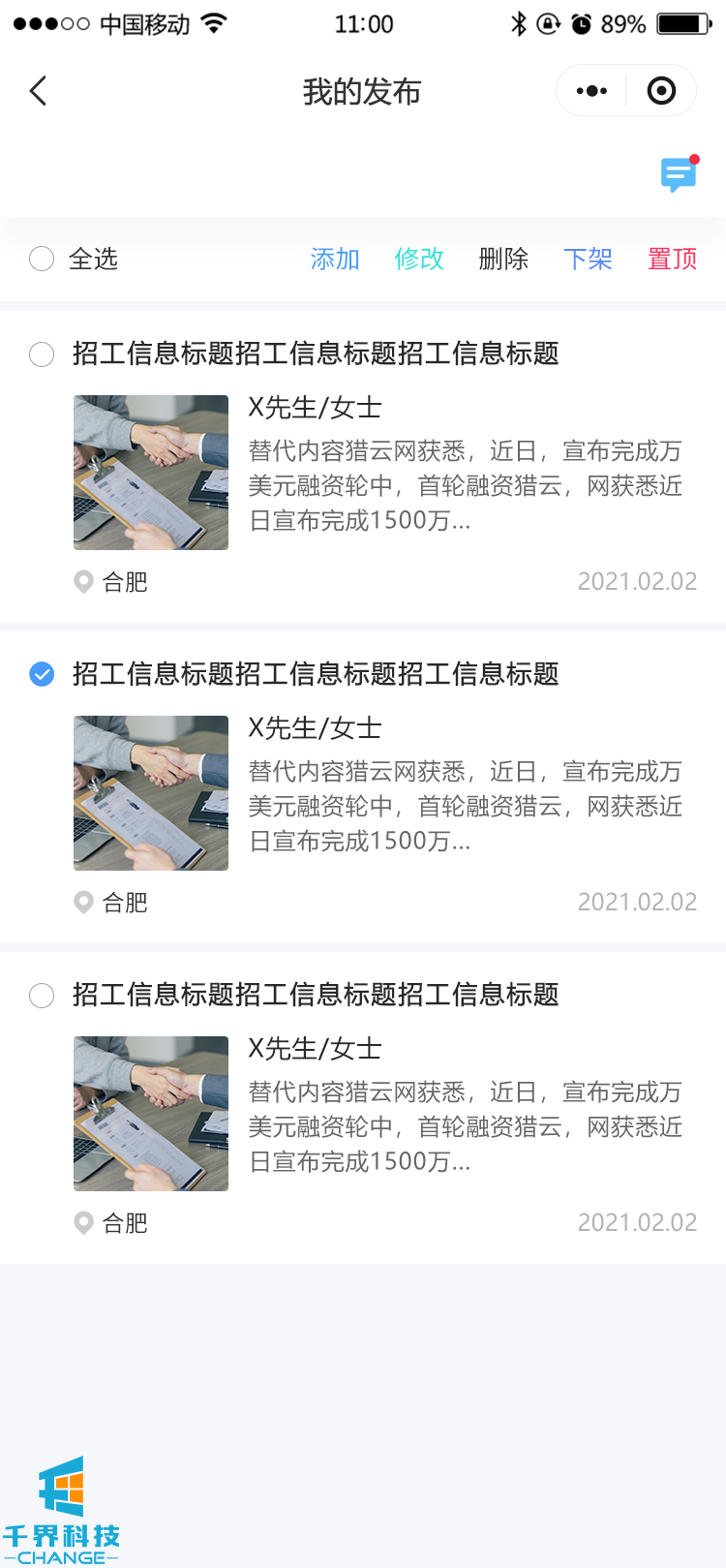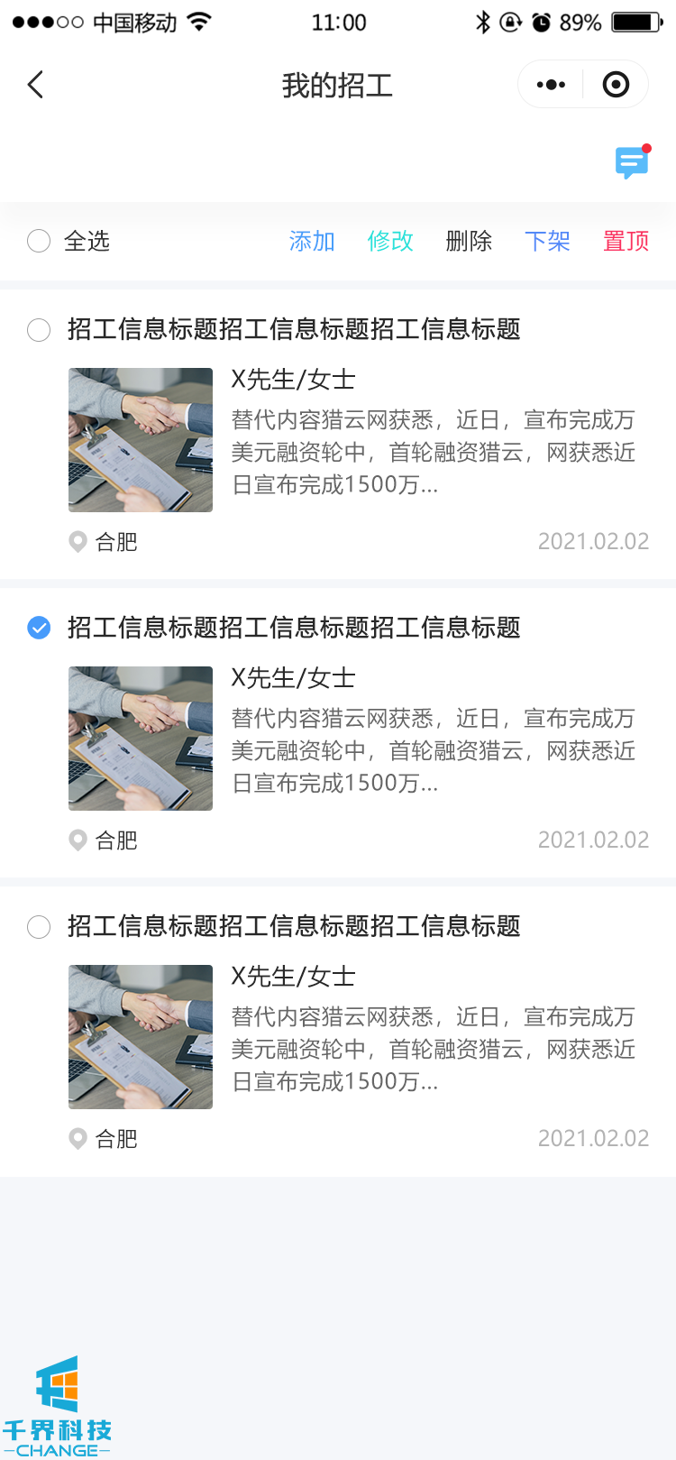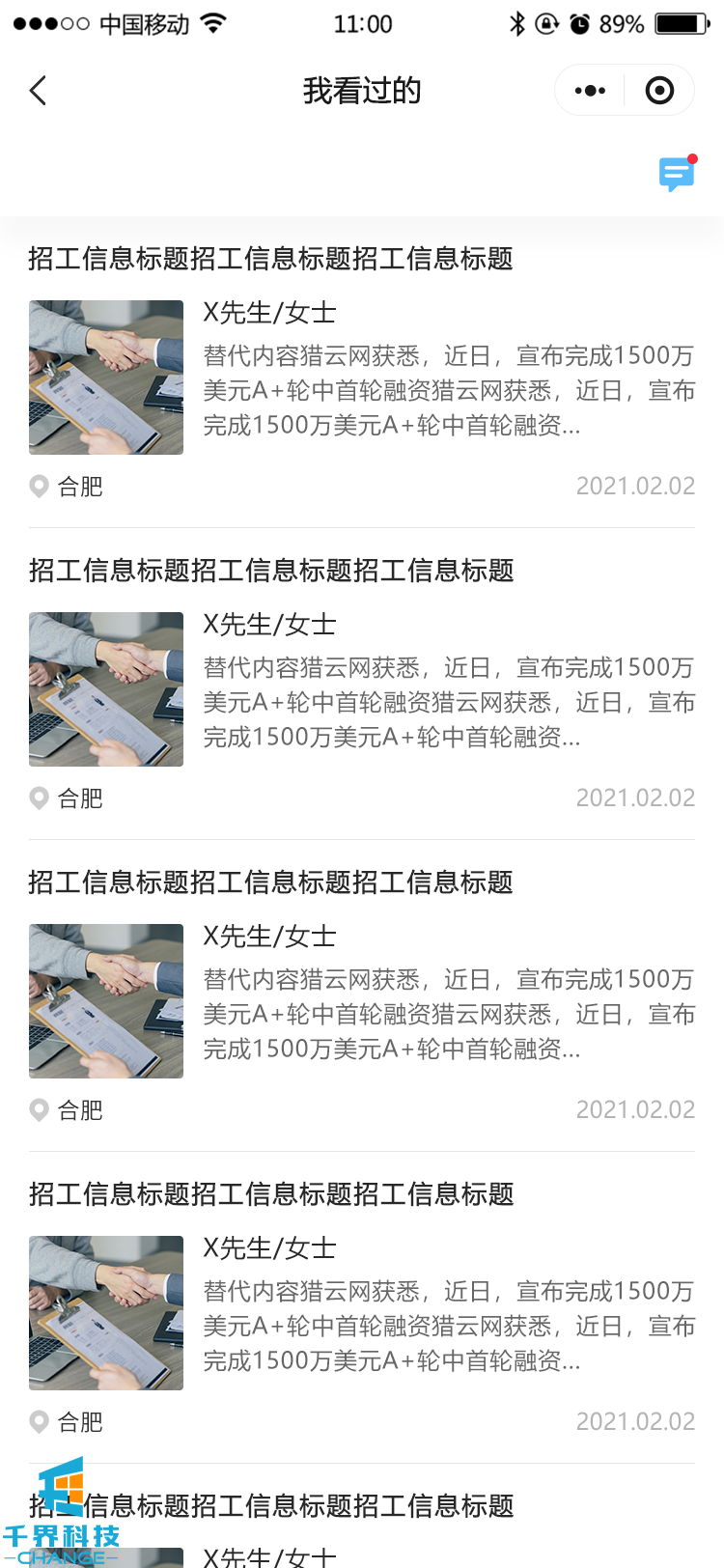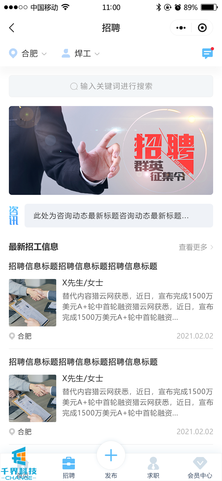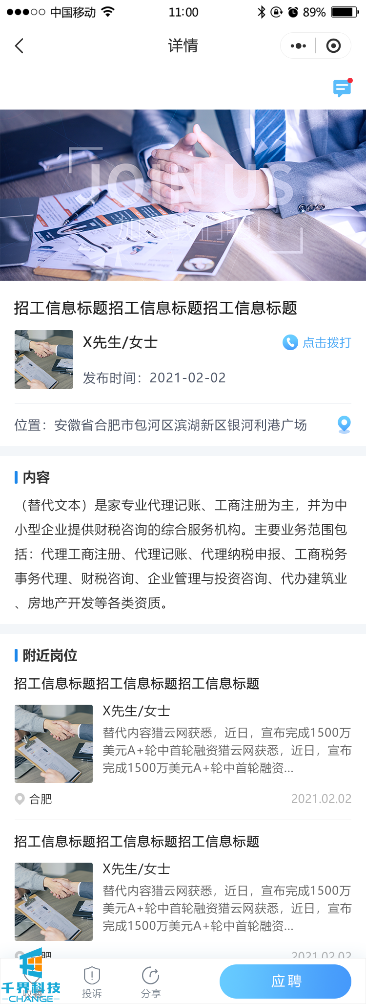 該項目是一個(gè)工人求職,企業(yè)招工類(lèi)似魚(yú)泡網(wǎng)的小程序,有發(fā)布求職信息,招工信息,添加自己的技能,積分充值,積分置頂等功能。