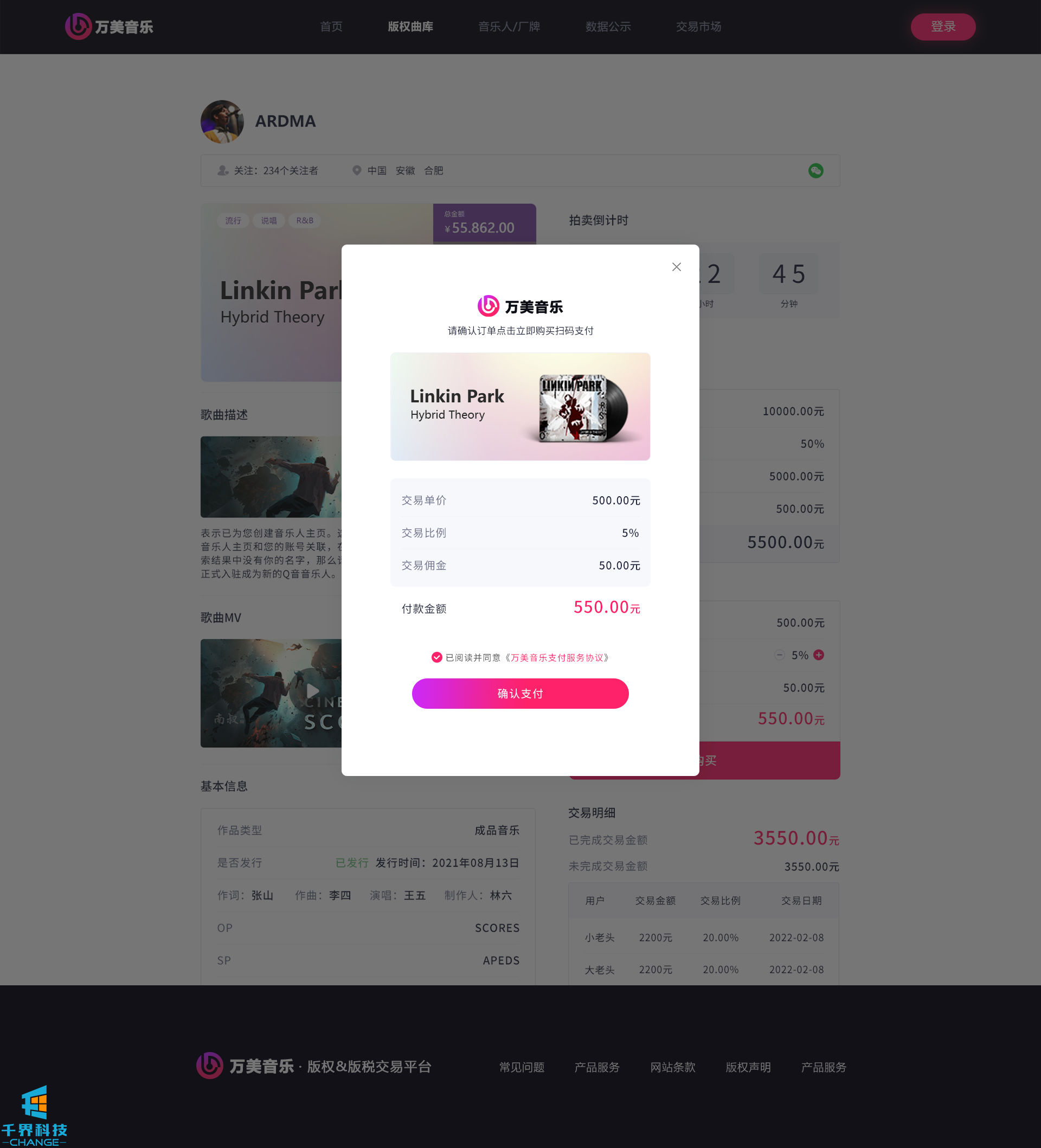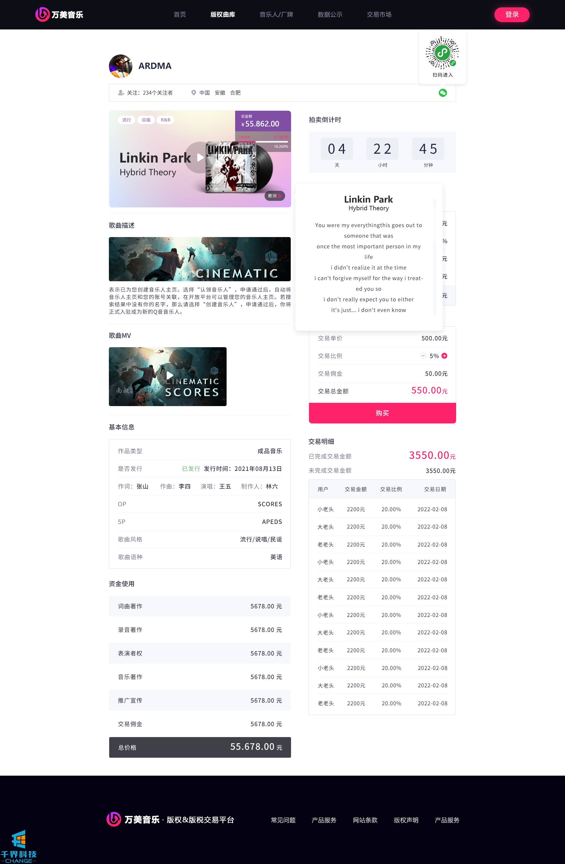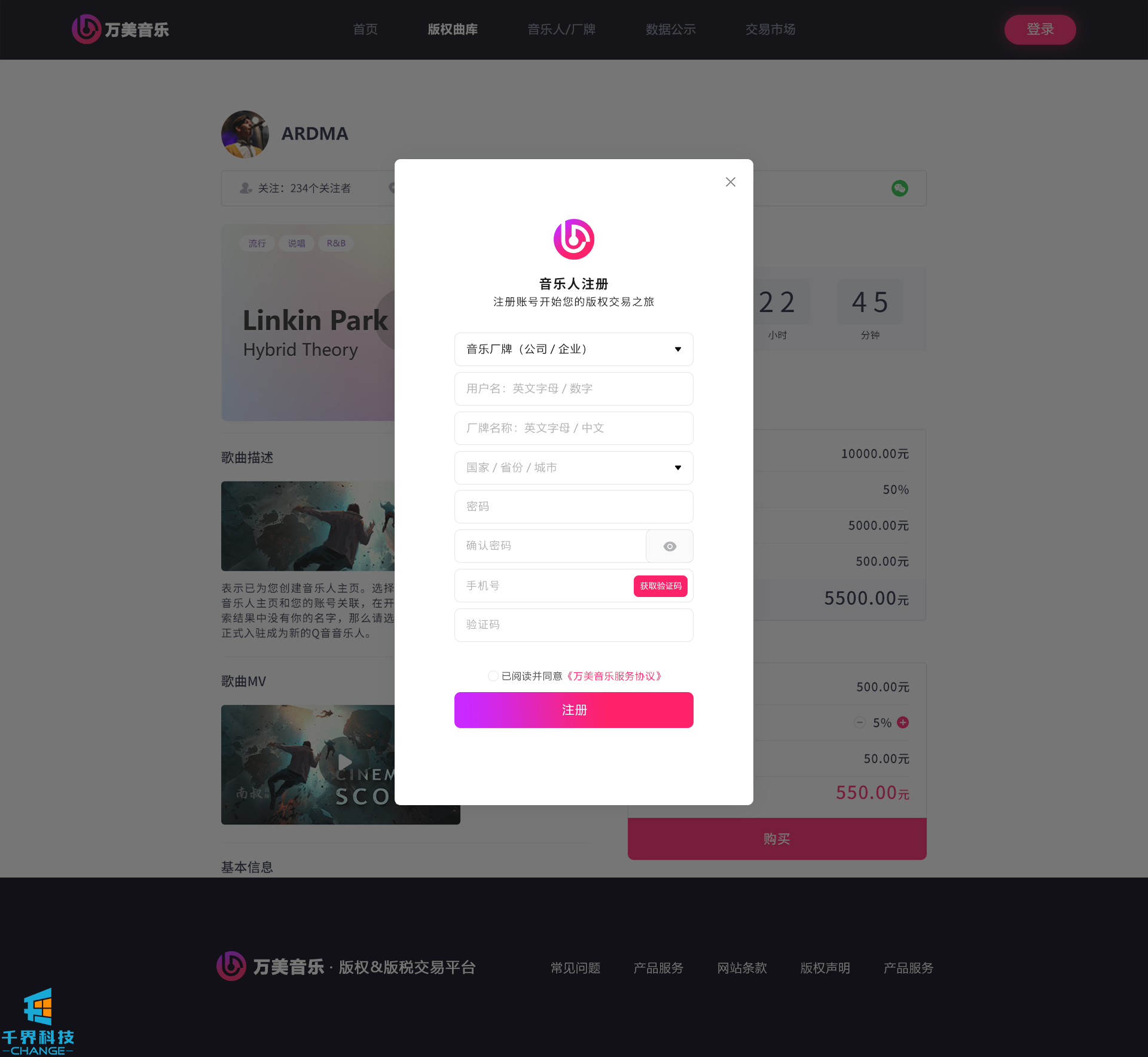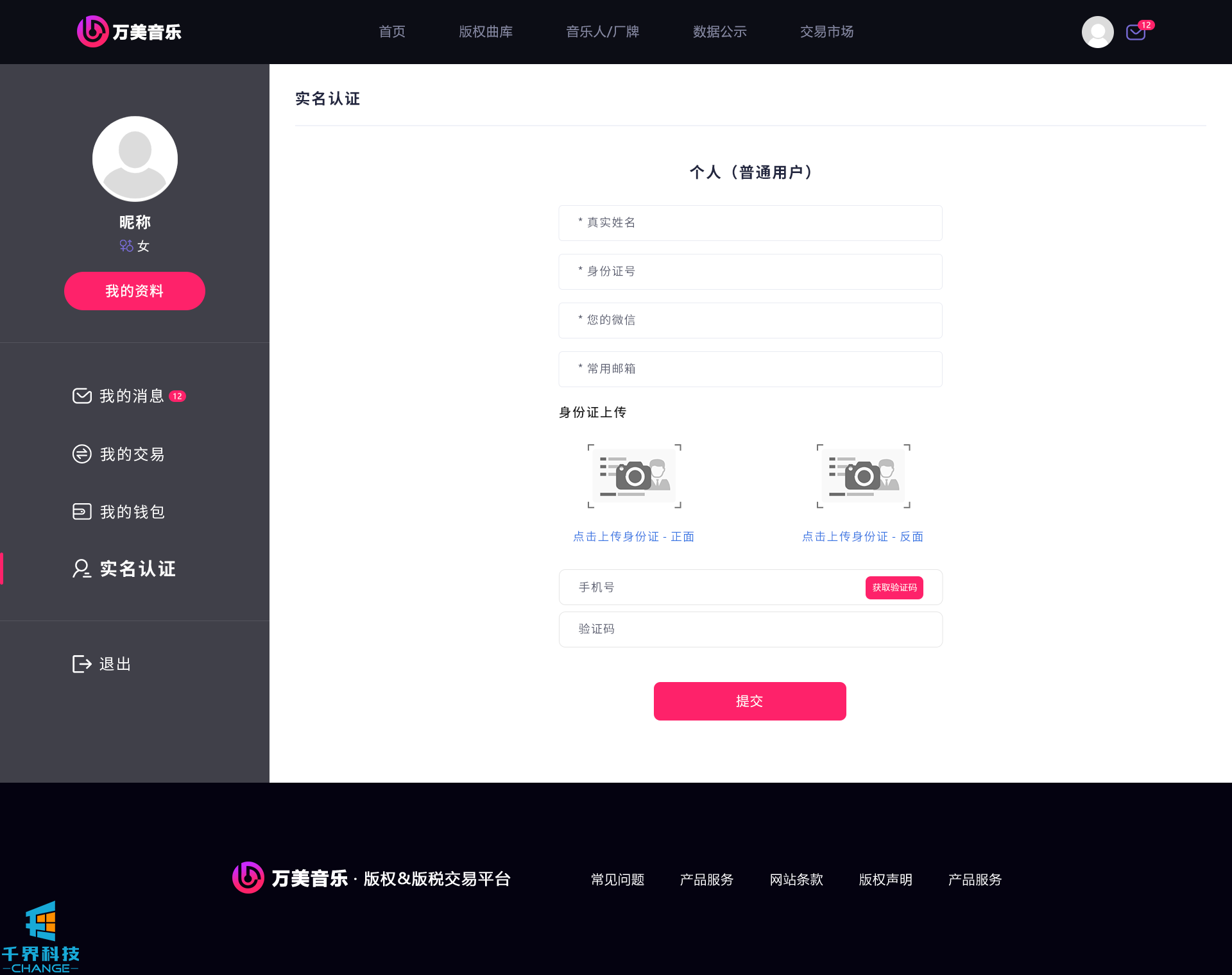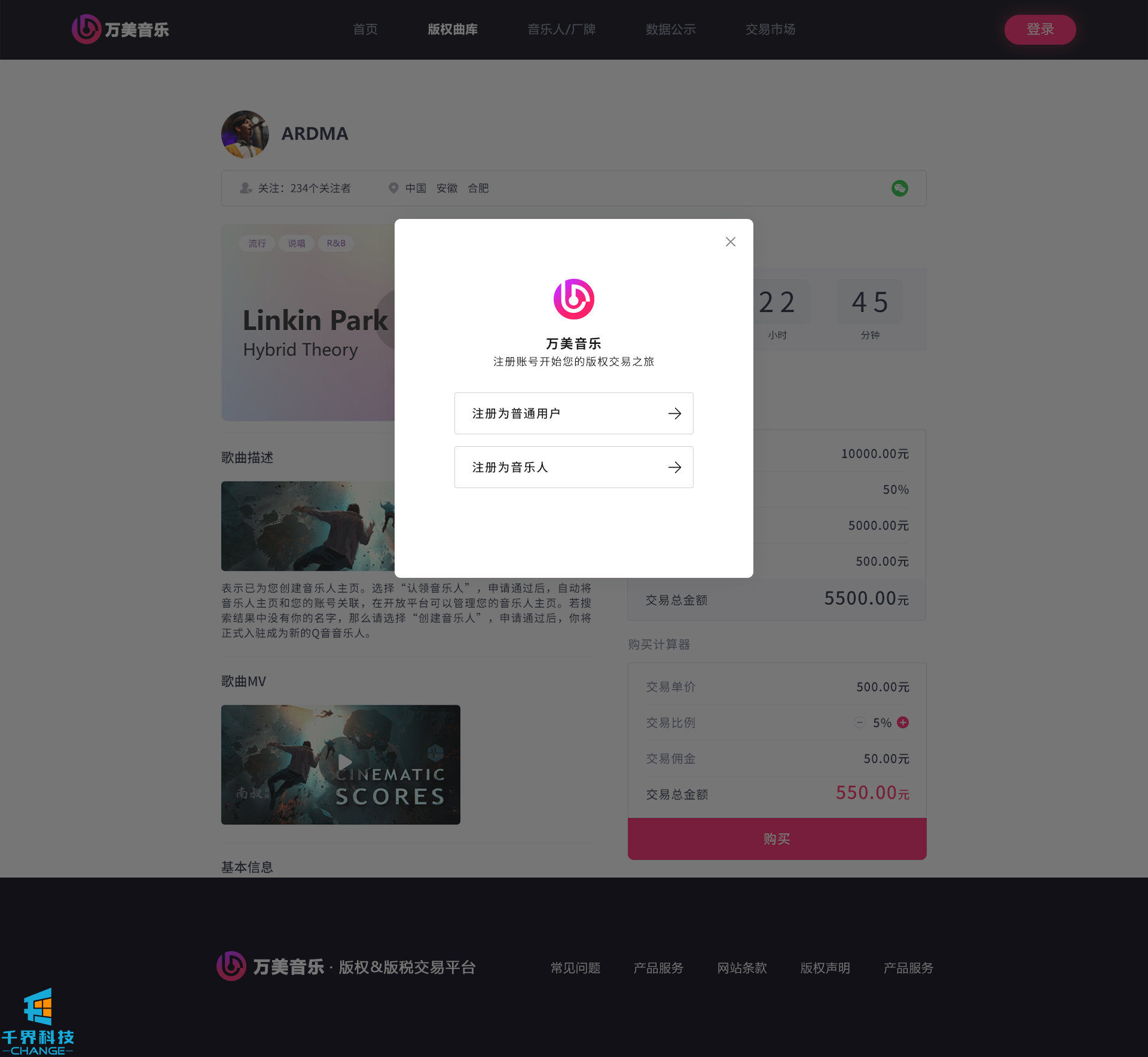 該項目是一個(gè)音樂(lè )網(wǎng)站版權交易網(wǎng)站,音樂(lè )人或者公司可以在網(wǎng)站上出售自己的創(chuàng )作的音樂(lè ),普通用戶(hù)可以通過(guò)購買(mǎi)對應版權,平臺后期會(huì )根據對應的版稅收入給到購買(mǎi)版權的普通用戶(hù)獎勵。