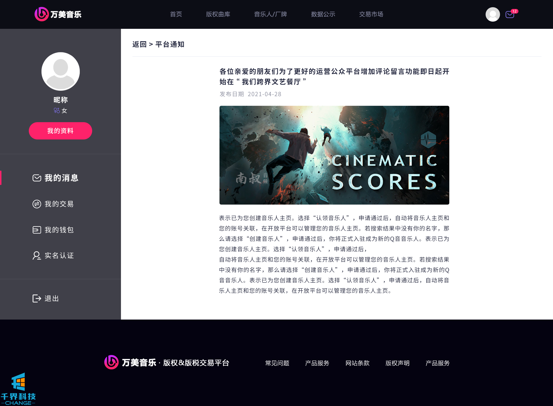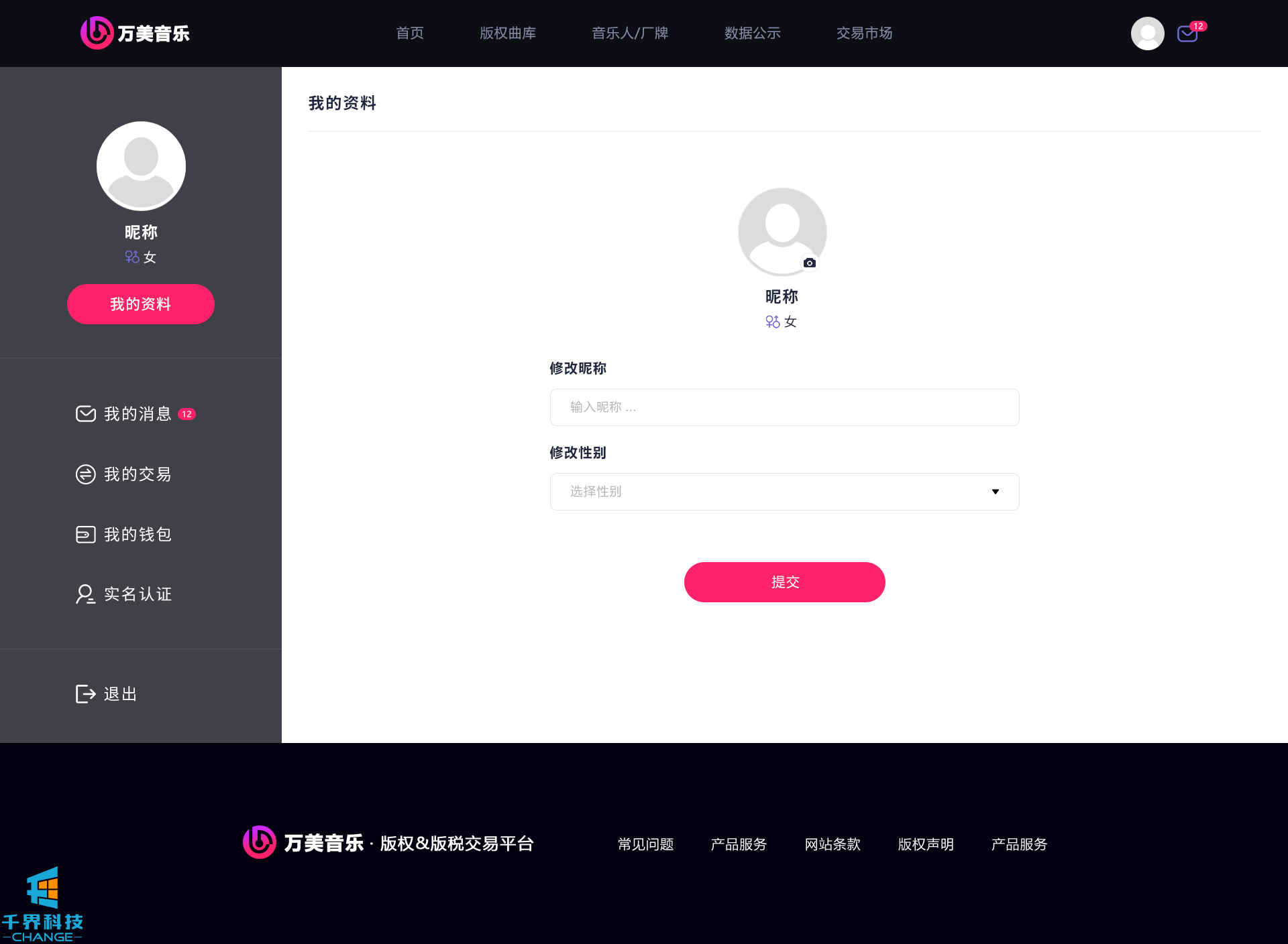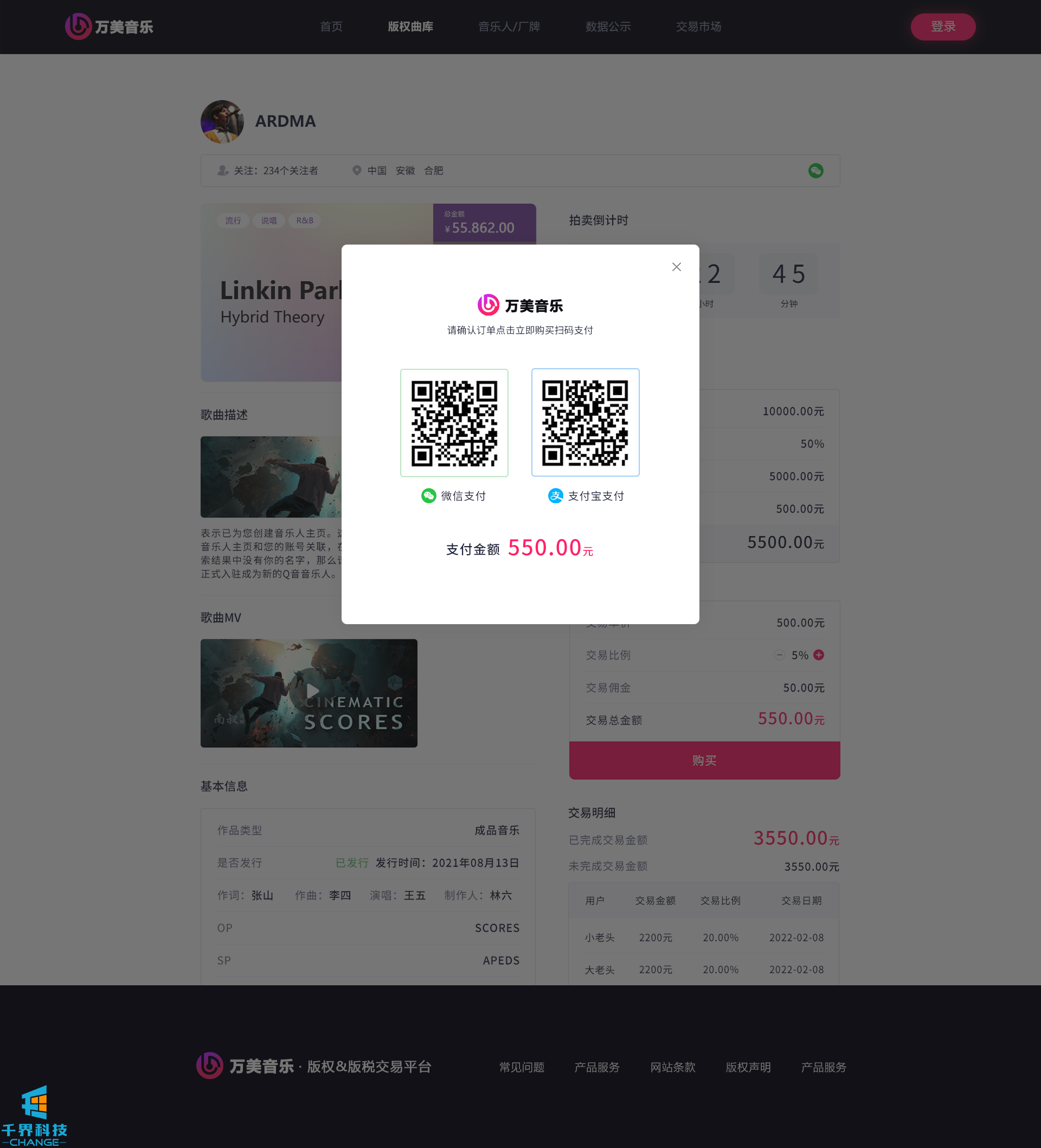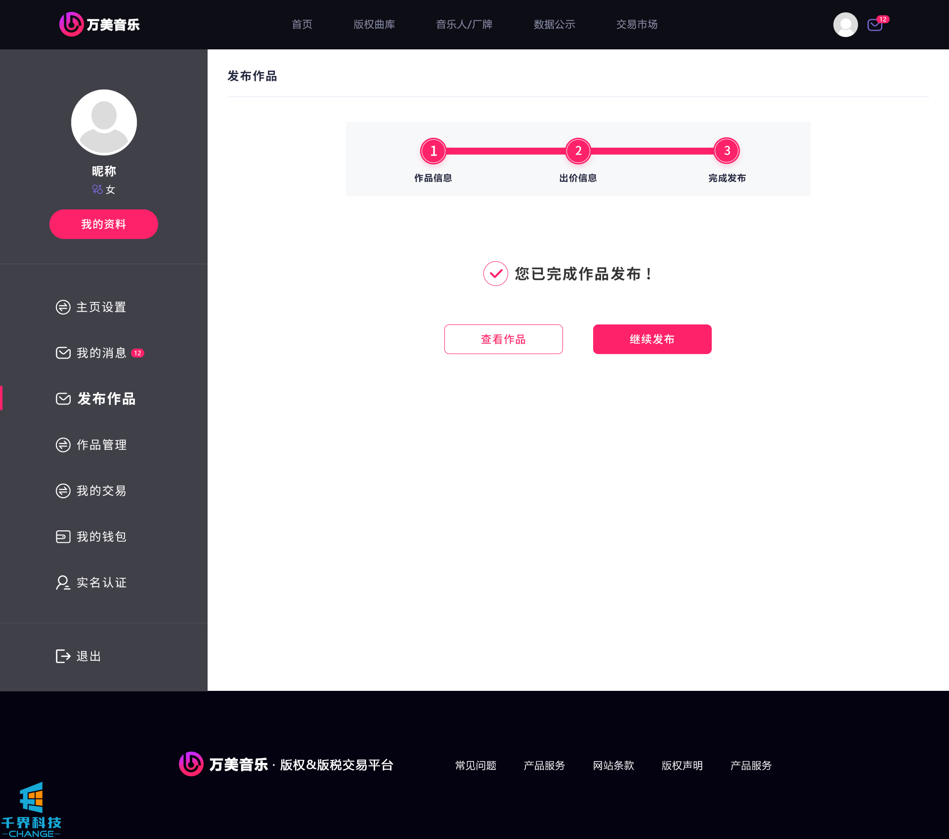 該項目是一個(gè)音樂(lè )網(wǎng)站版權交易網(wǎng)站,音樂(lè )人或者公司可以在網(wǎng)站上出售自己的創(chuàng )作的音樂(lè ),普通用戶(hù)可以通過(guò)購買(mǎi)對應版權,平臺后期會(huì )根據對應的版稅收入給到購買(mǎi)版權的普通用戶(hù)獎勵。