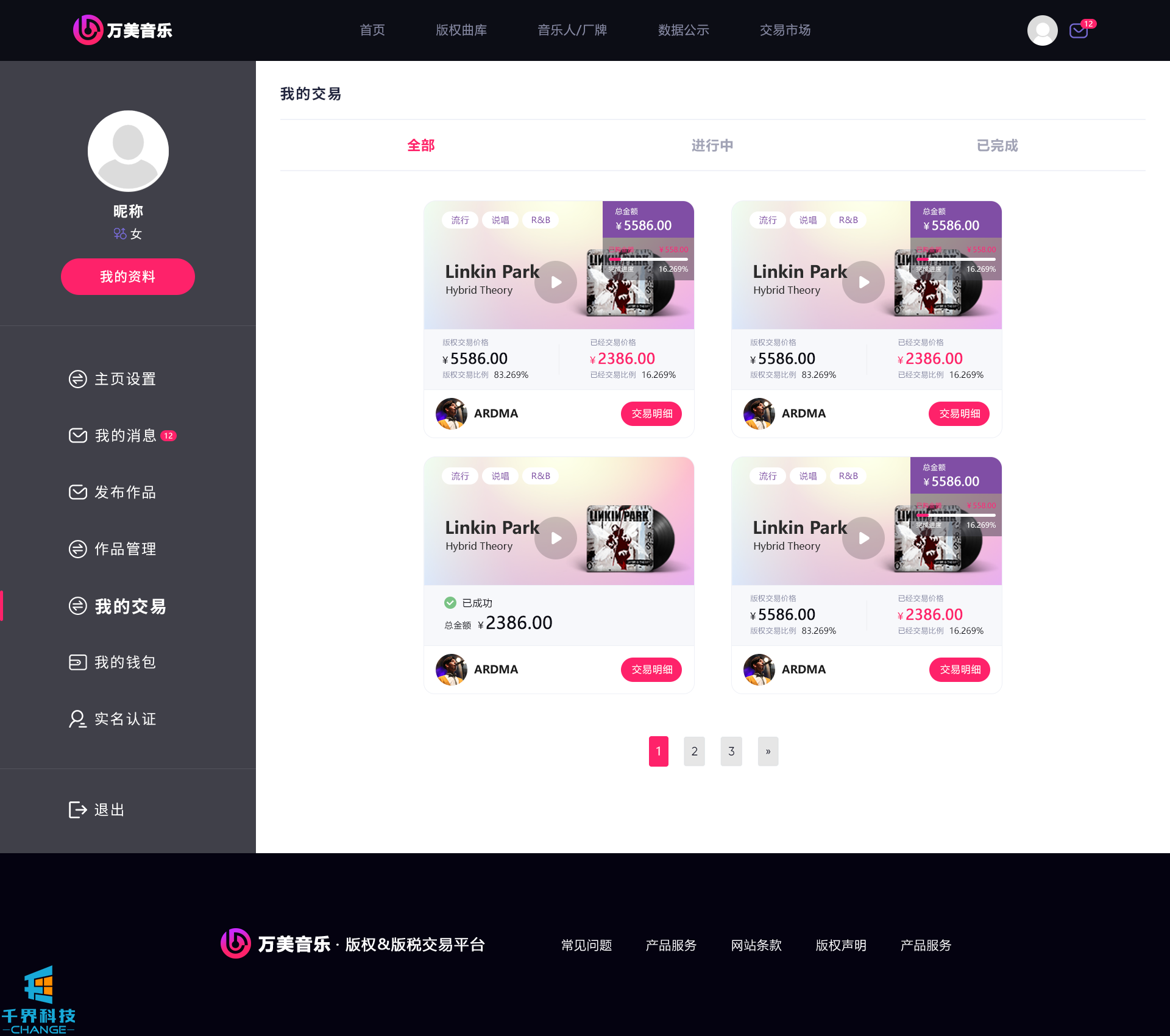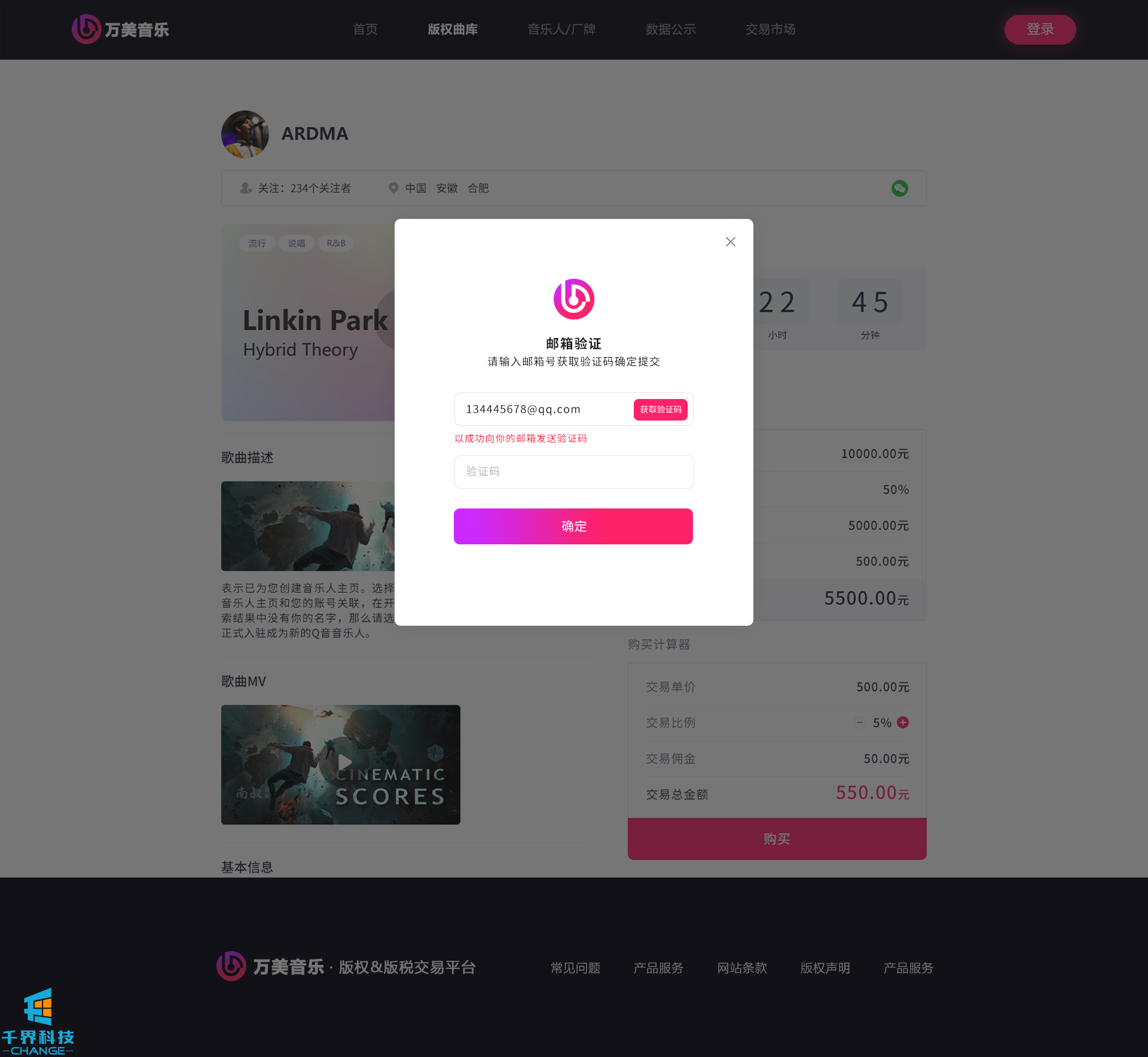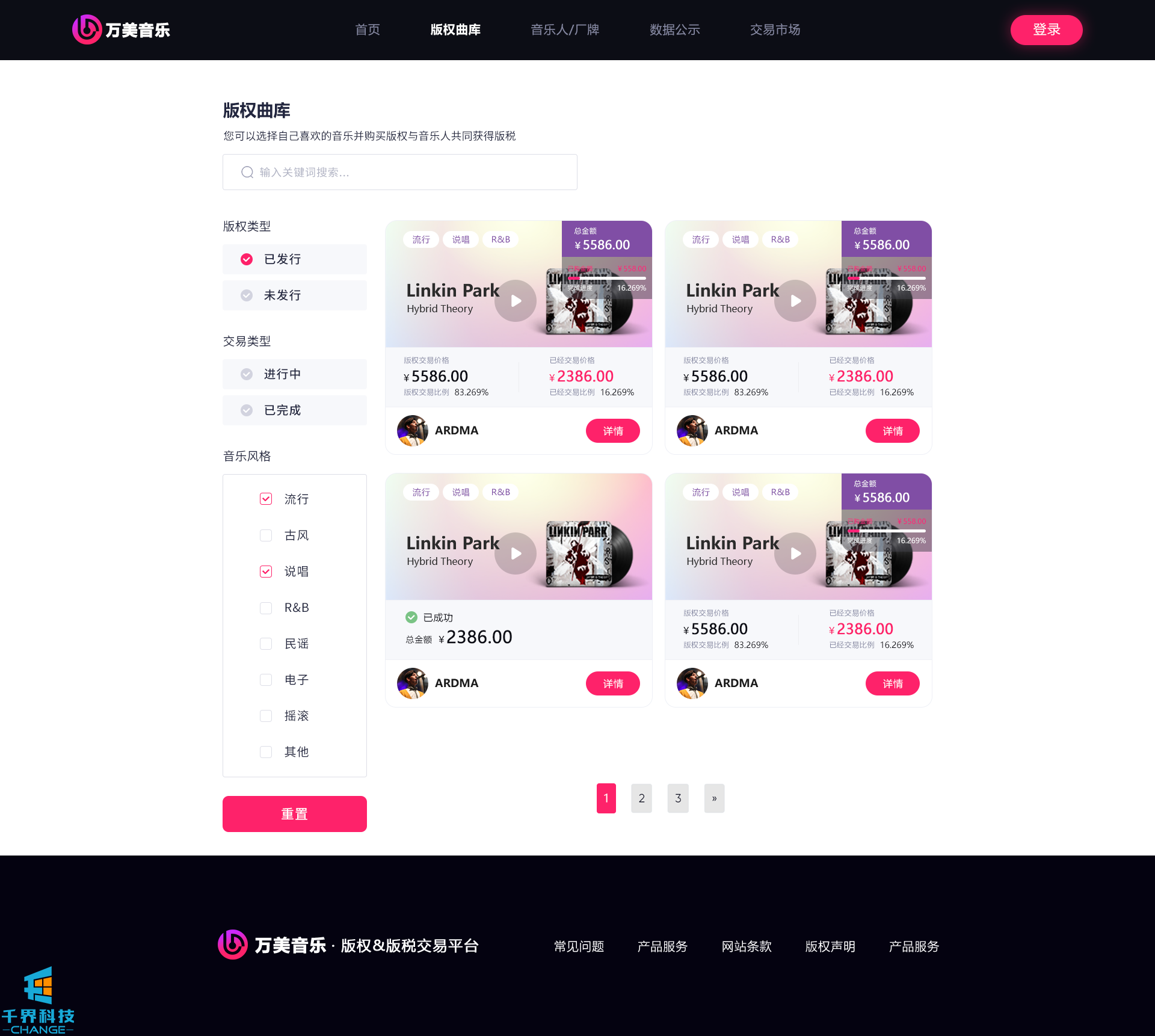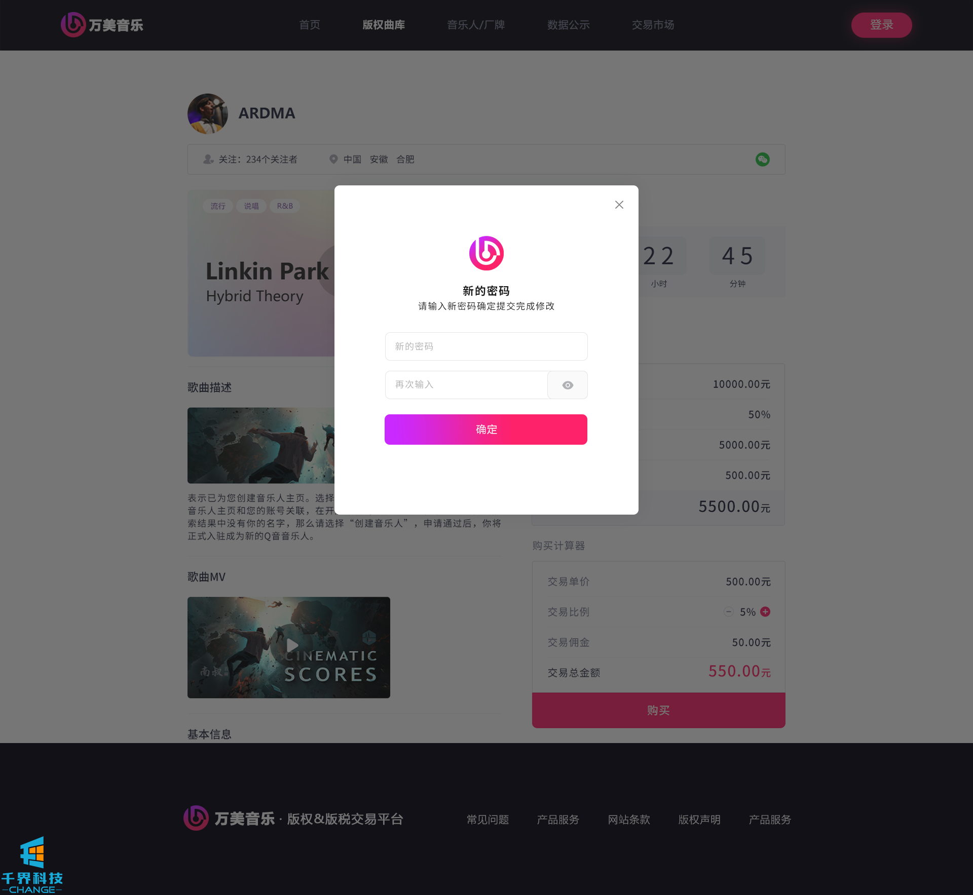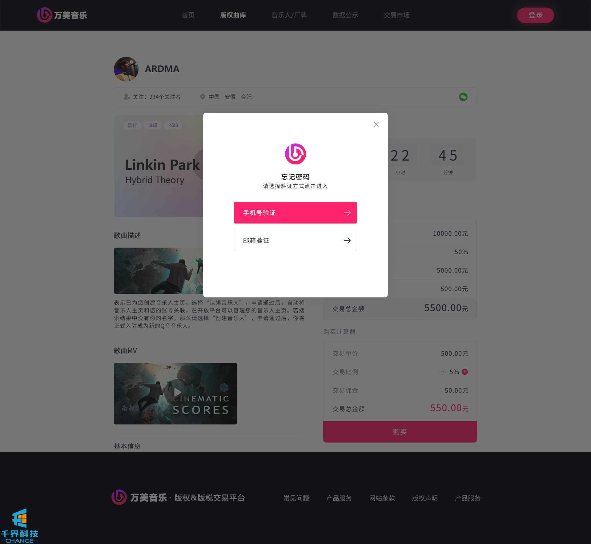 該項目是一個(gè)音樂(lè )網(wǎng)站版權交易網(wǎng)站,音樂(lè )人或者公司可以在網(wǎng)站上出售自己的創(chuàng )作的音樂(lè ),普通用戶(hù)可以通過(guò)購買(mǎi)對應版權,平臺后期會(huì )根據對應的版稅收入給到購買(mǎi)版權的普通用戶(hù)獎勵。