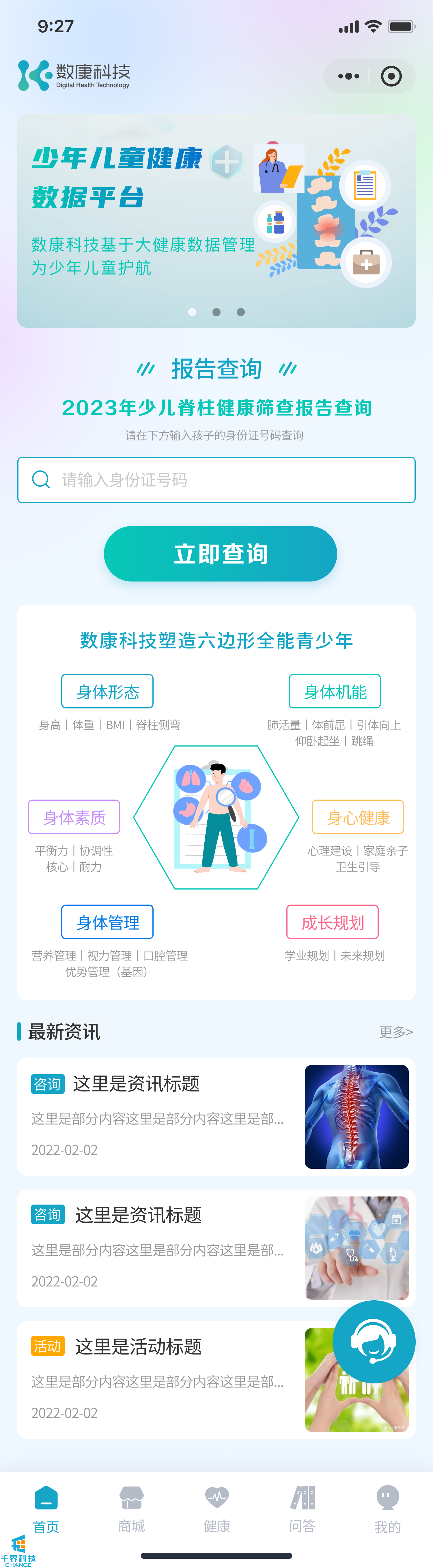 該項目是一個(gè)查詢(xún)脊柱健康篩查結果的小程序,對應通過(guò)硬件對接方式獲取硬件檢測結果,家長(cháng)通過(guò)小程序查詢(xún)孩子的檢查報告信息。