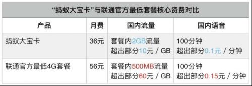 值得一說(shuō)的是,螞蟻寶卡的套餐價(jià)格低于聯(lián)通官方價(jià)格,套餐內流量之差更是有3倍之多。在中國聯(lián)通官方資費介紹中,最低的4G套餐為56元,可以獲得500MB的國內流量和100分鐘國內語(yǔ)音。國內語(yǔ)音超出套餐部分,官方套餐為0.15元/分鐘,大寶卡套餐則為0.1元/分鐘。