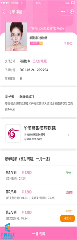 ①分期詳情:針對分期訂單,可點(diǎn)擊查看分期明細,每期的金額、狀態(tài)(已支付/待支付/已逾期)、應支付時(shí)間及實(shí)際支付時(shí)間等